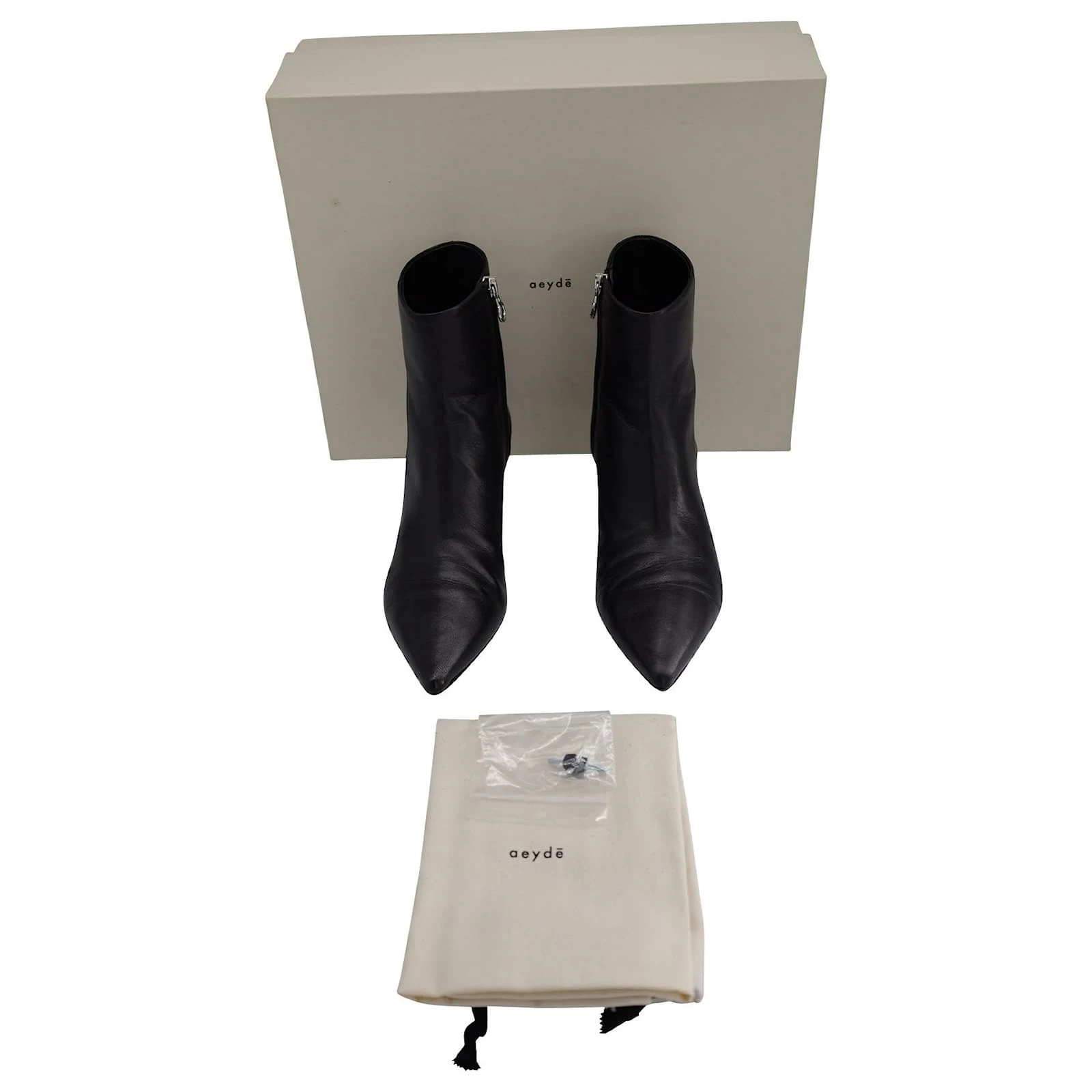 Aeyde Sofie Ankle Boots in Black Nappa Leather