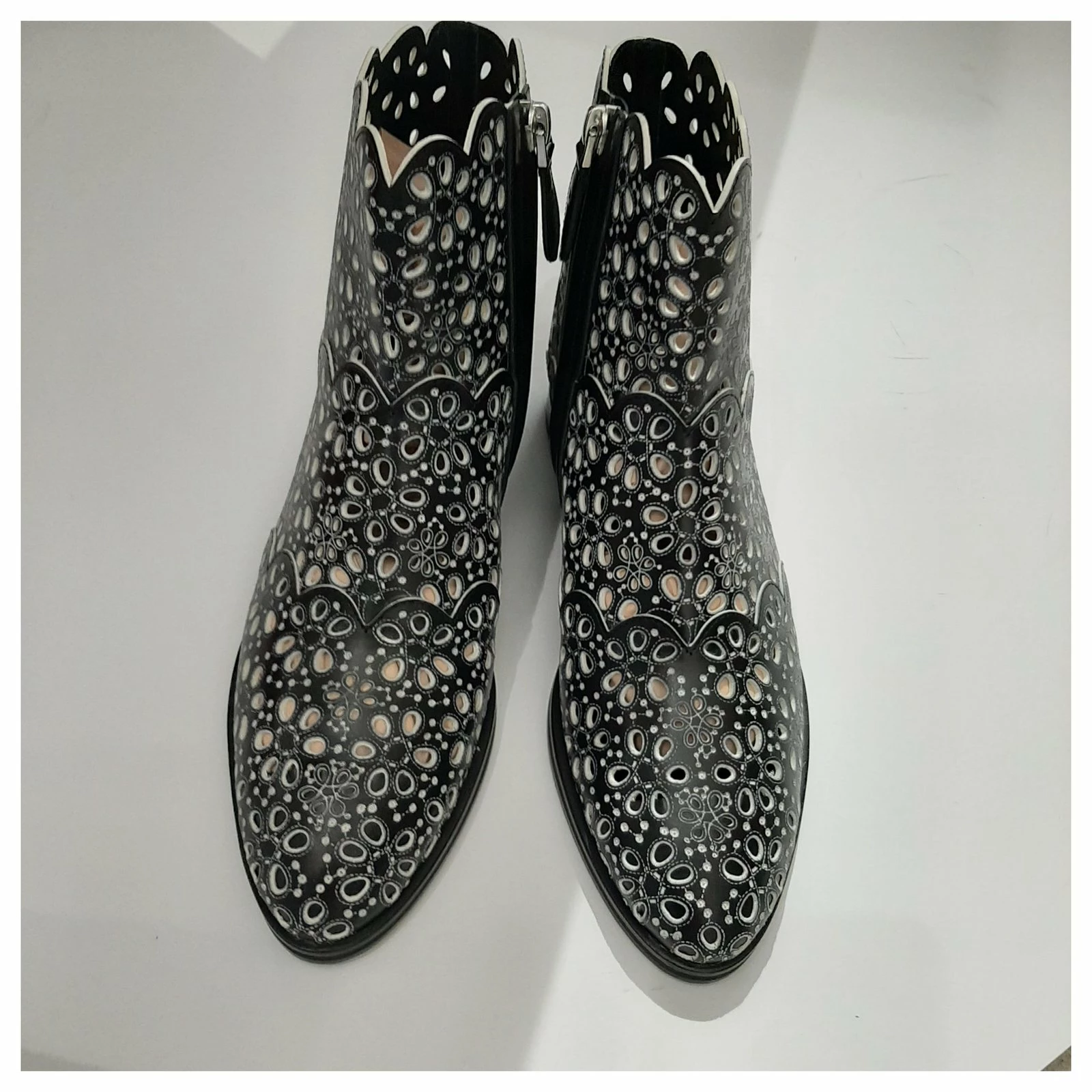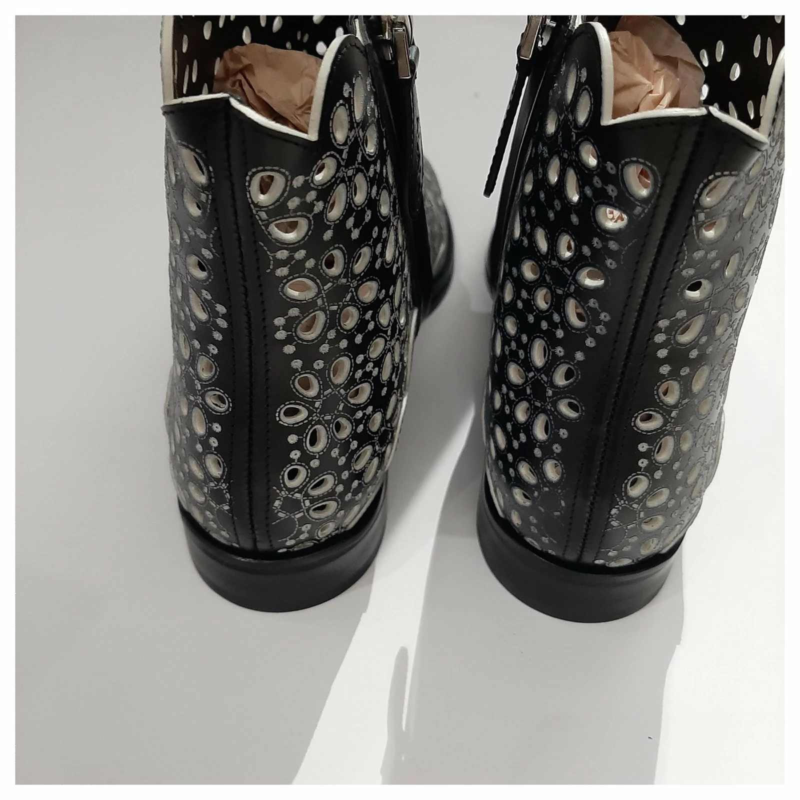 Perforated leather ankle boots. Measurement indicated 37. Perfect never used.with box.