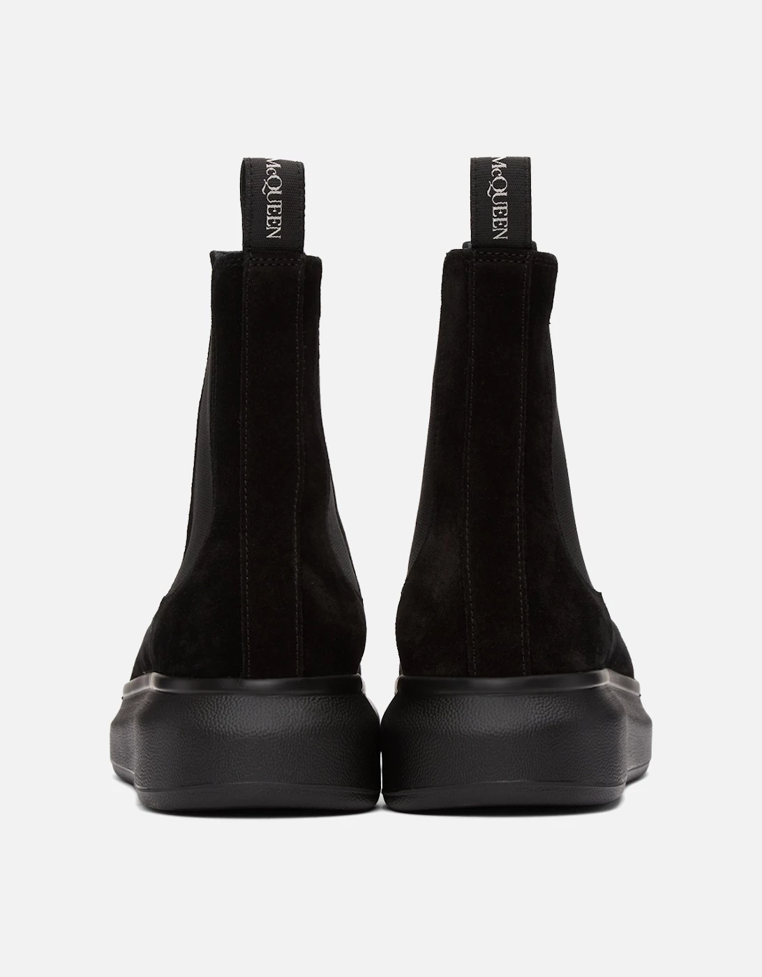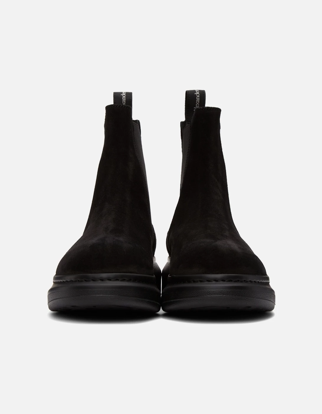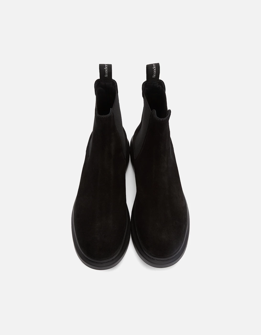 Ankle-high suede Chelsea boots in black. · Elasticized gusset at sides · Logo-woven webbing pull-loop at heel collar · Tonal rubber sole Supplier color: Black