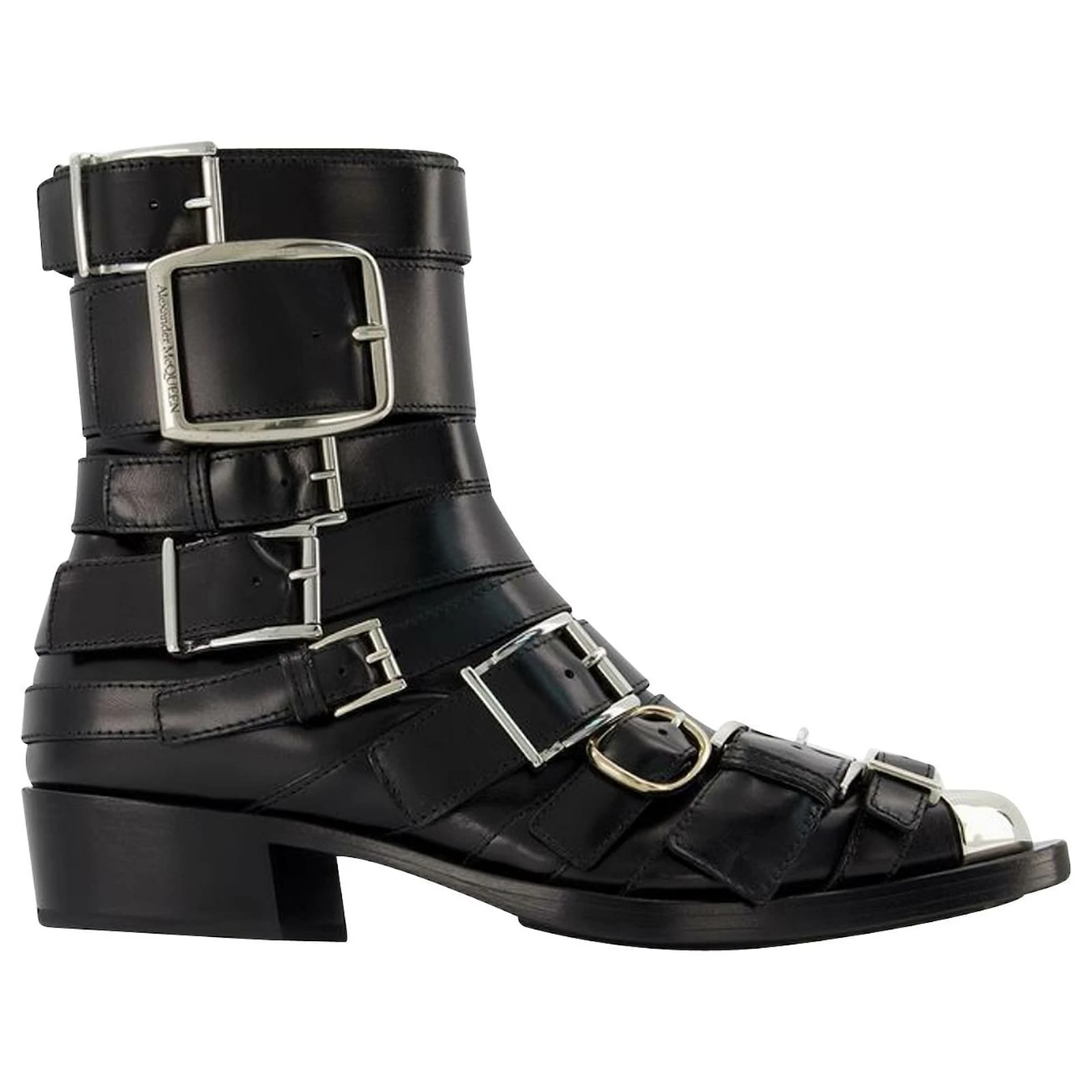 Alexander Mcqueen Boxcar Boots In Black/Silver Leather