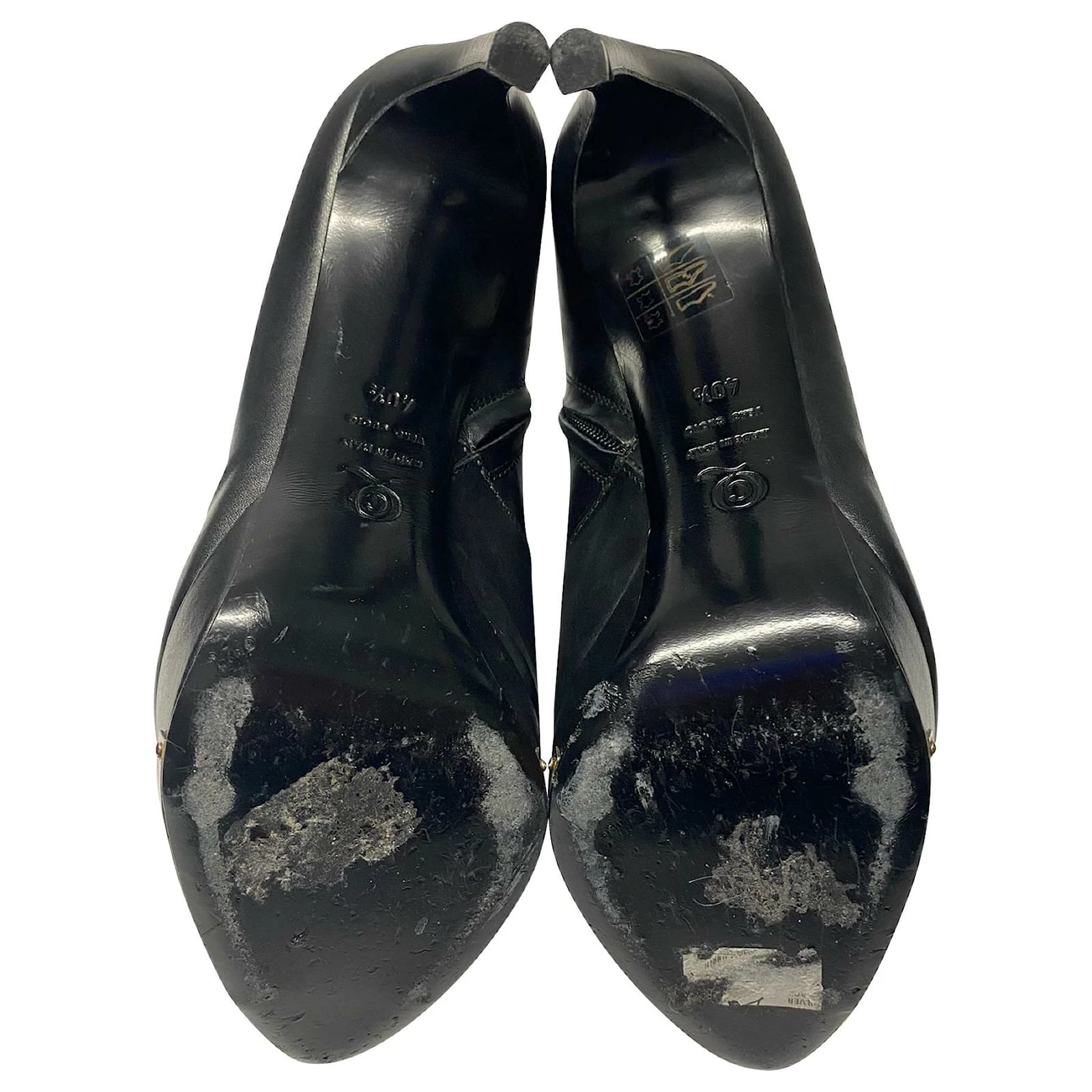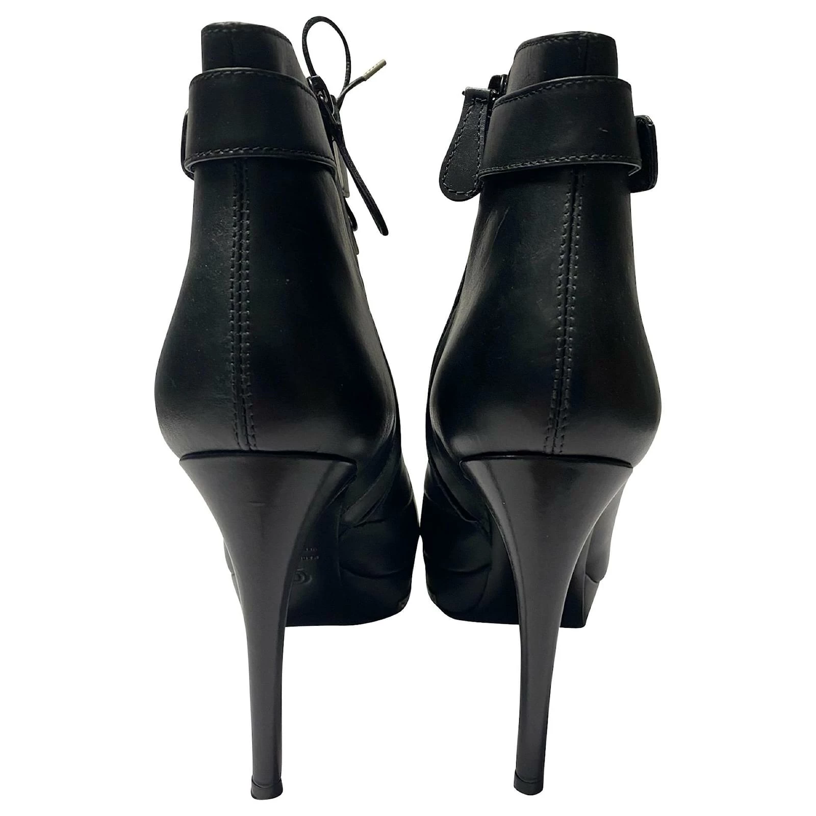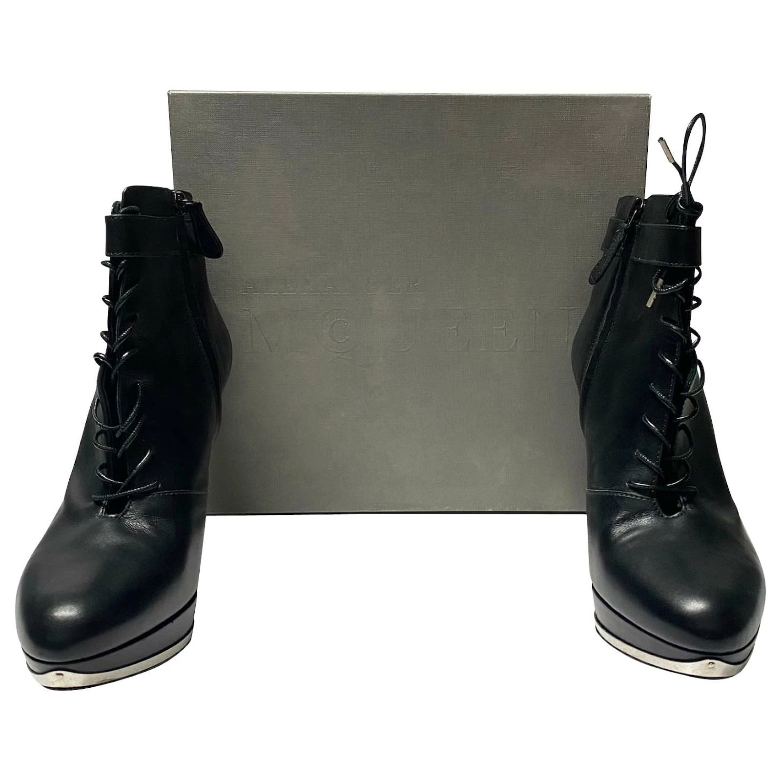 Alexander McQueen Curved Heel Platform Ankle Boots in Black Leather