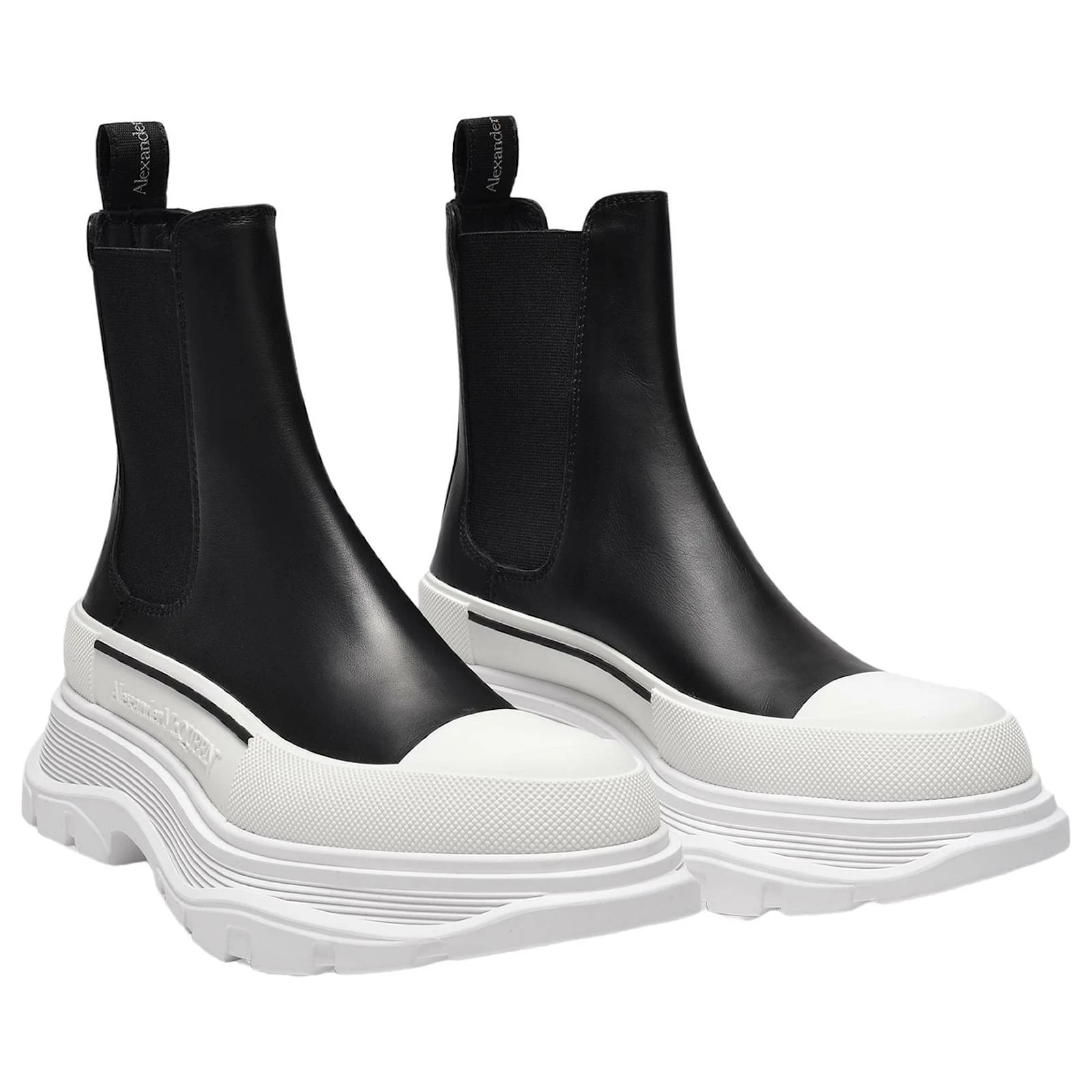 Be the first to review “Alexander Mcqueen Tread Slick Boots In Black Leather, White Sole And Silver Detail” Cancel reply