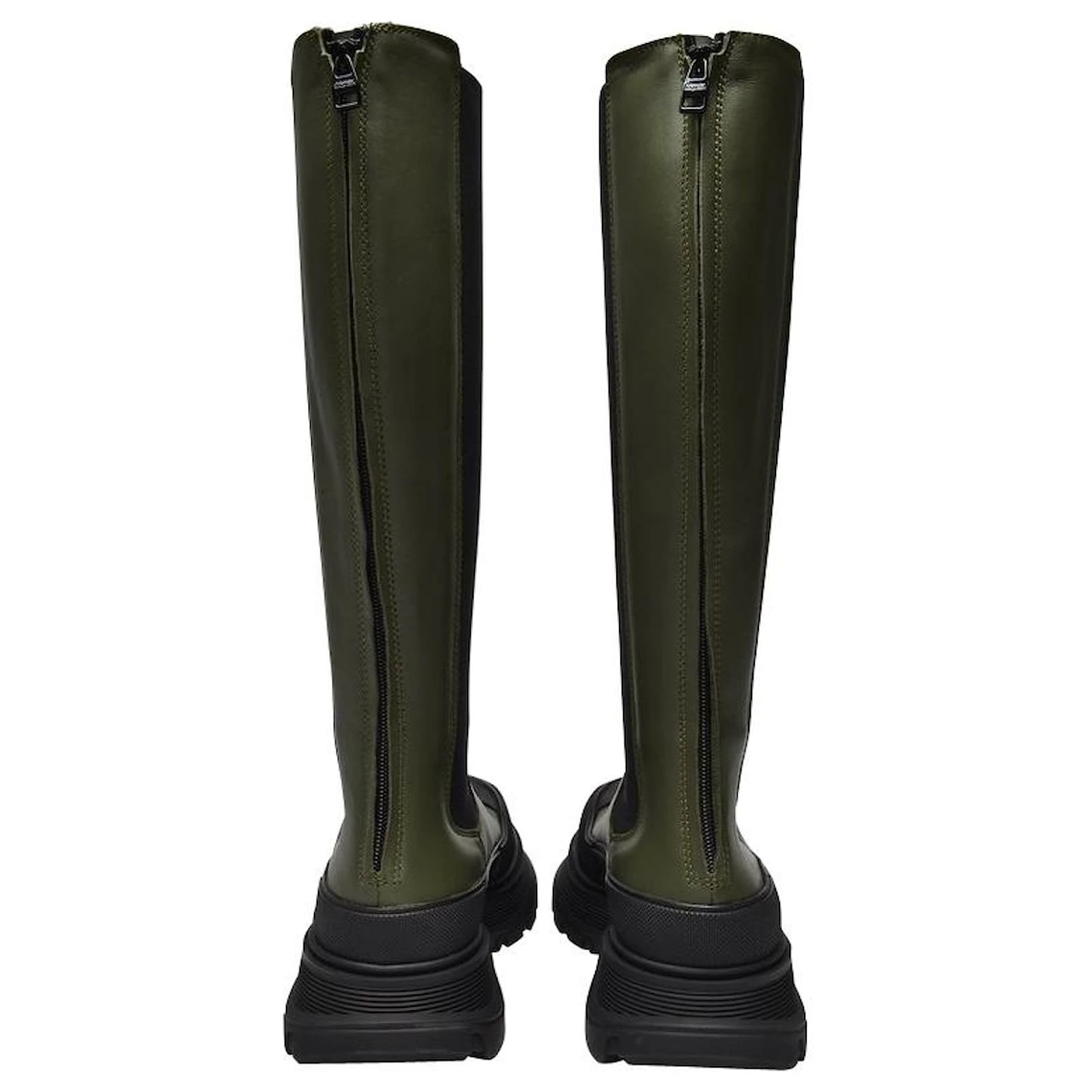 Alexander Mcqueen Upper And Ru Boots In Khaki Leather Green