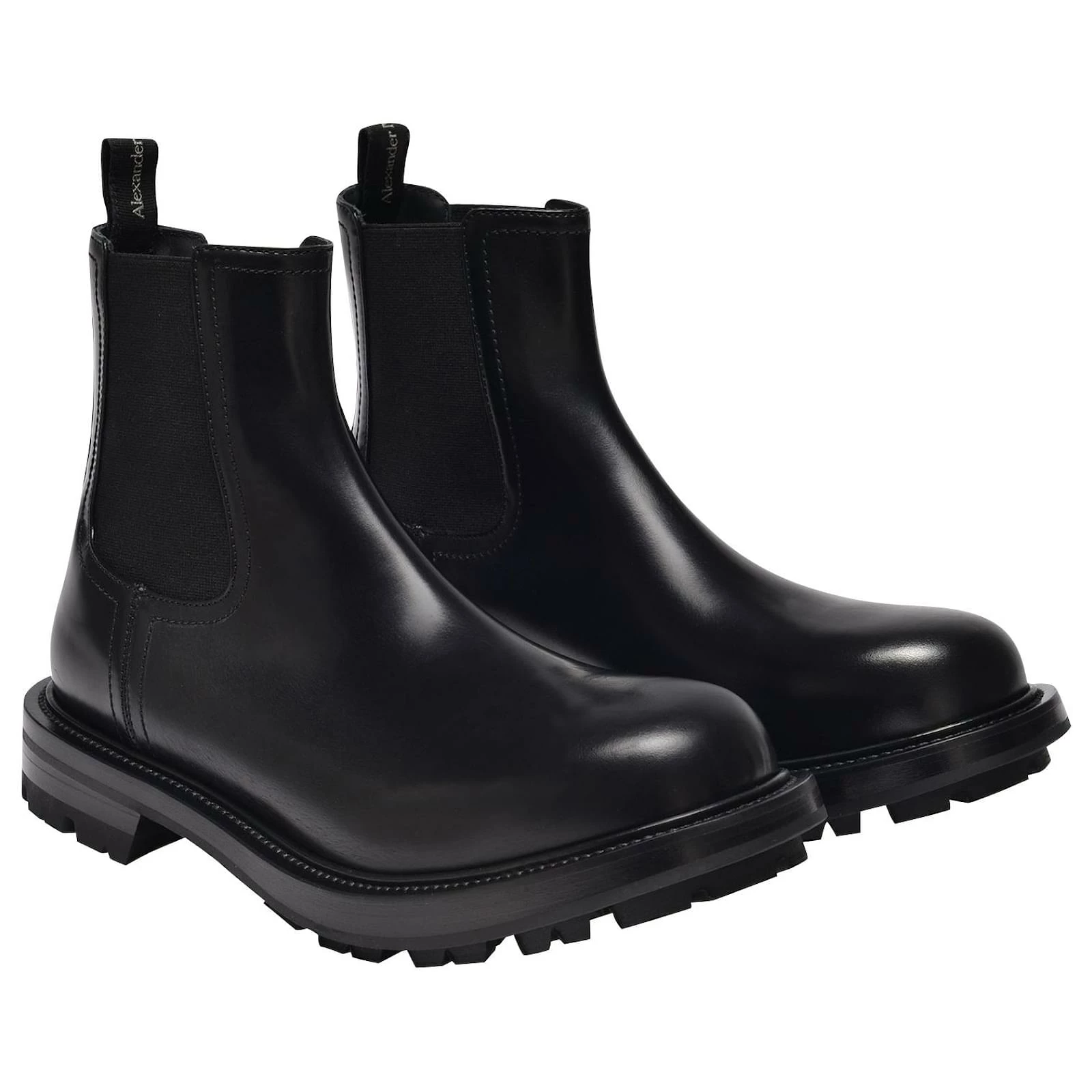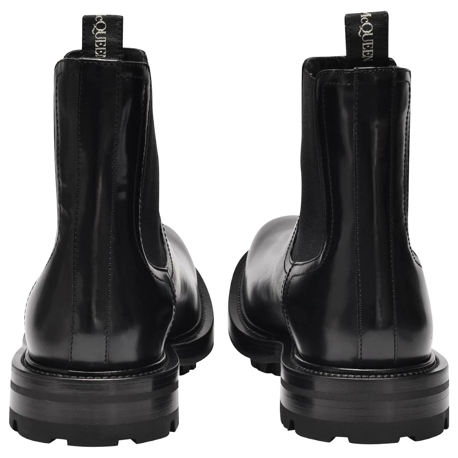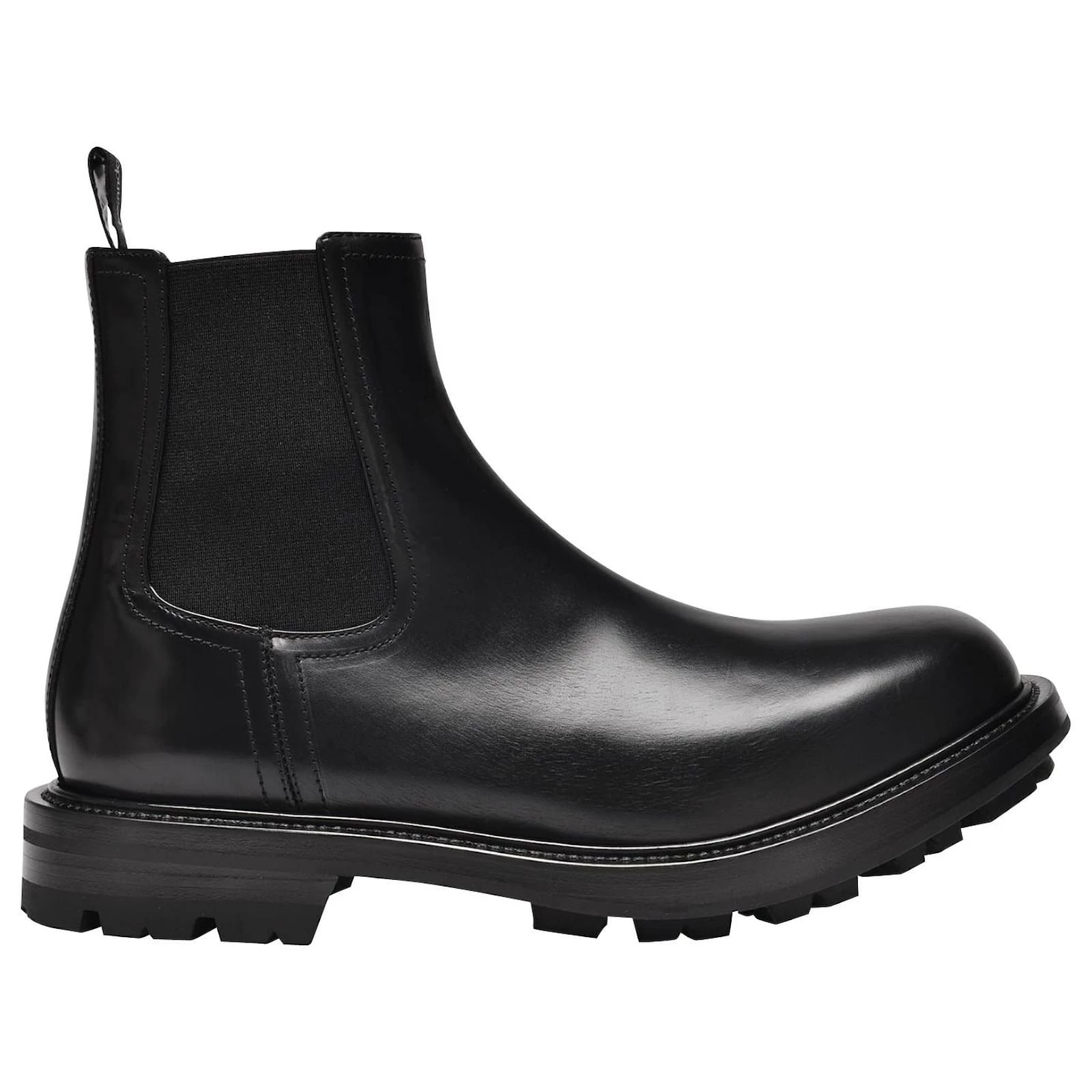 We love the classic look to these Chelsea-inspired boots with a serrated rubber sole that adds an edge. A must-have from Alexander McQueen, to wear with jeans and a blazer for a great city look.