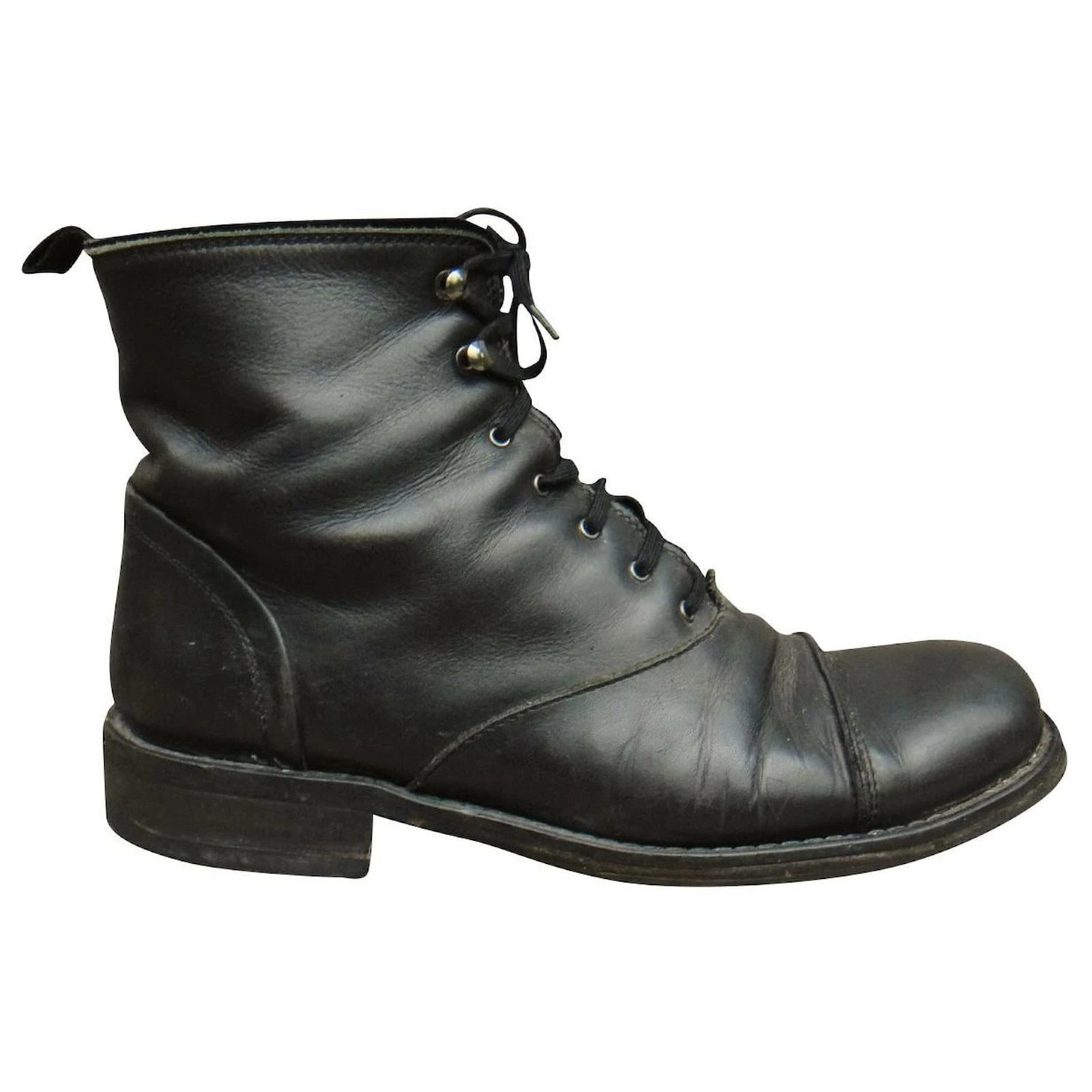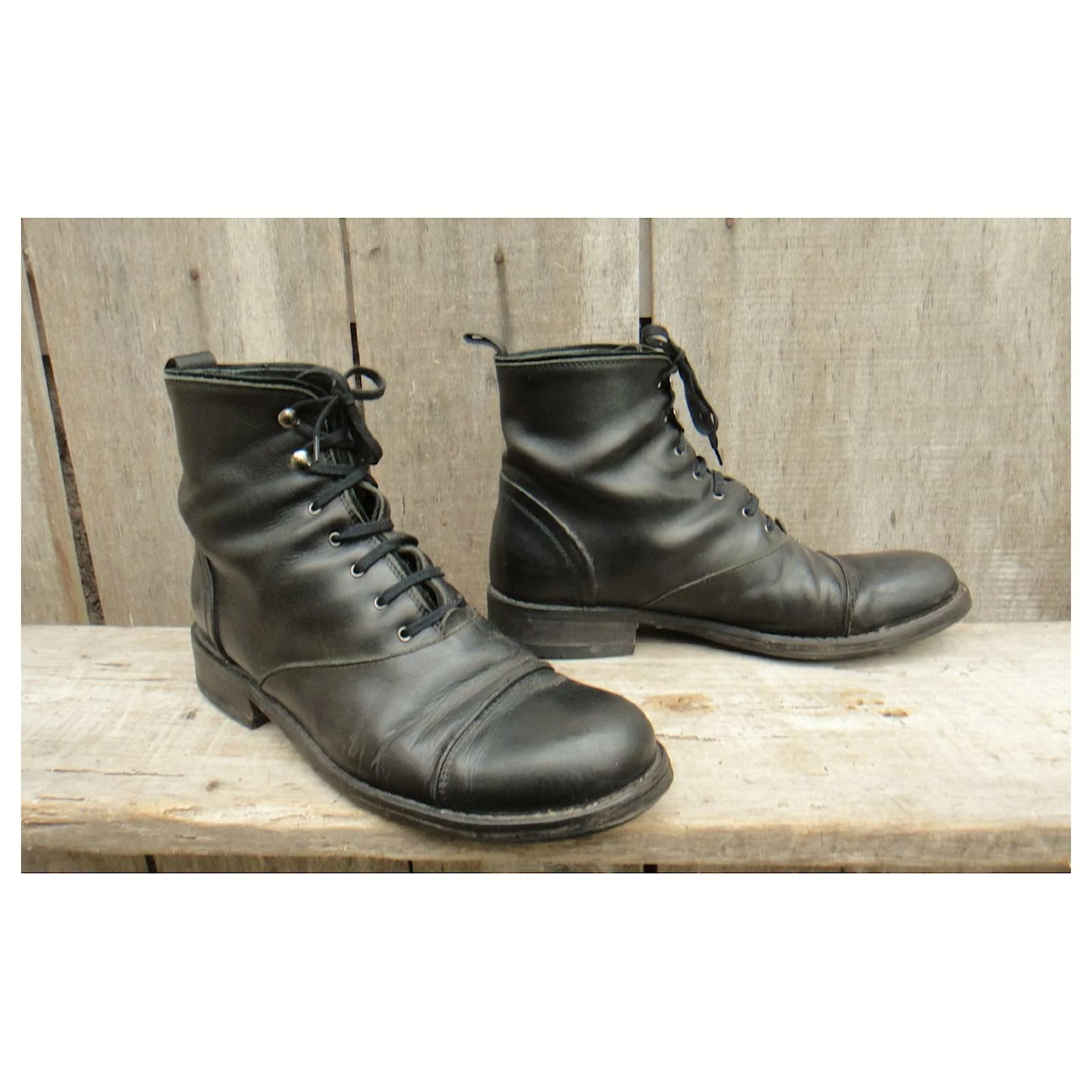 Autre Marque All Leather Laced Ankle Boots Made In Italy P 38 Black
