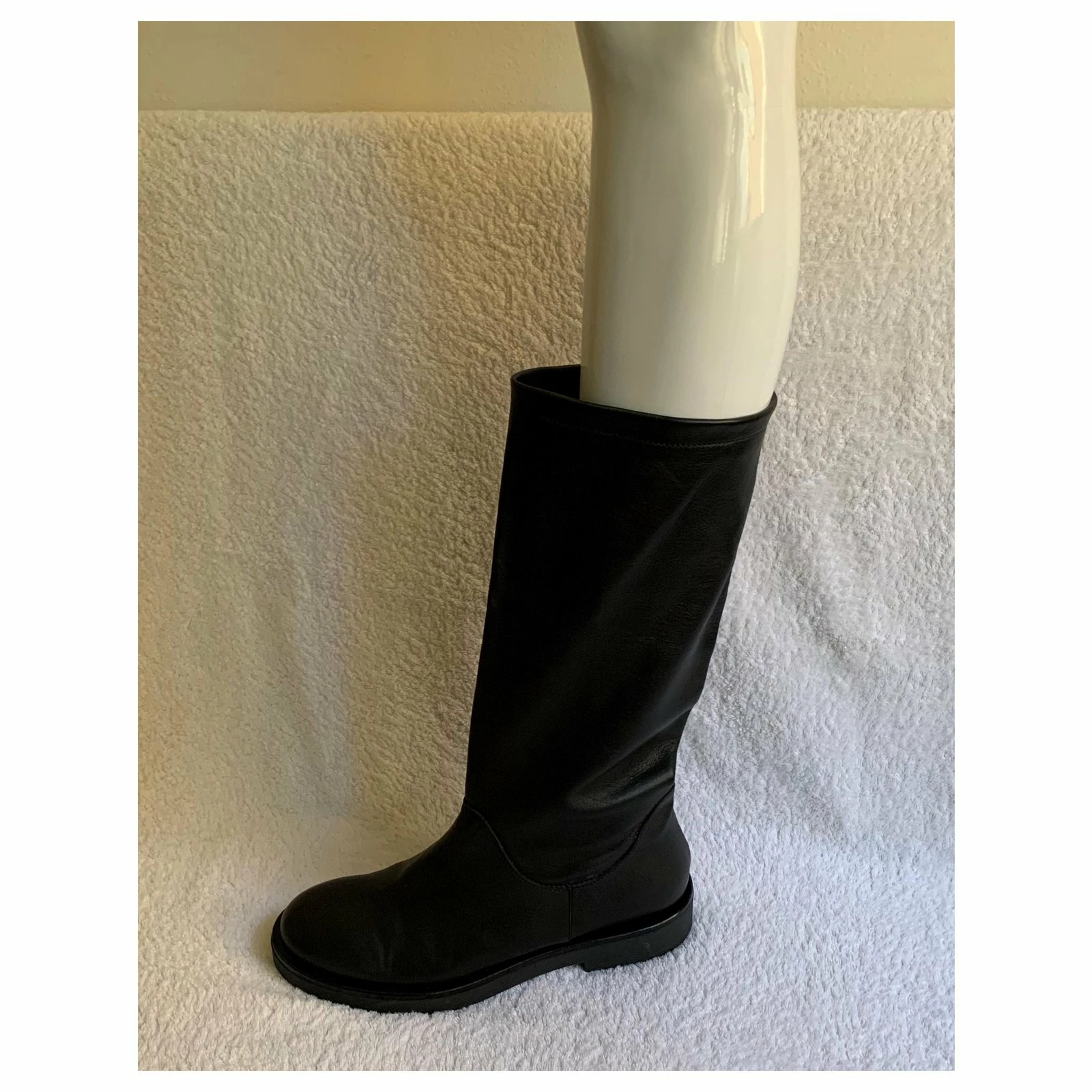 Casual boots by italian brand ARTIST. In black color, qualitative and soft calf leather leather material, black outer rubber sole. Biker styled. Made in Italy. Size EU40, regular fit. inner sole 28cm, Heel 3cm, leg’s length 36cm, top width 18cm. Totally new, never used or worn. Delivered with packaging (no dustbag). Code RA213.