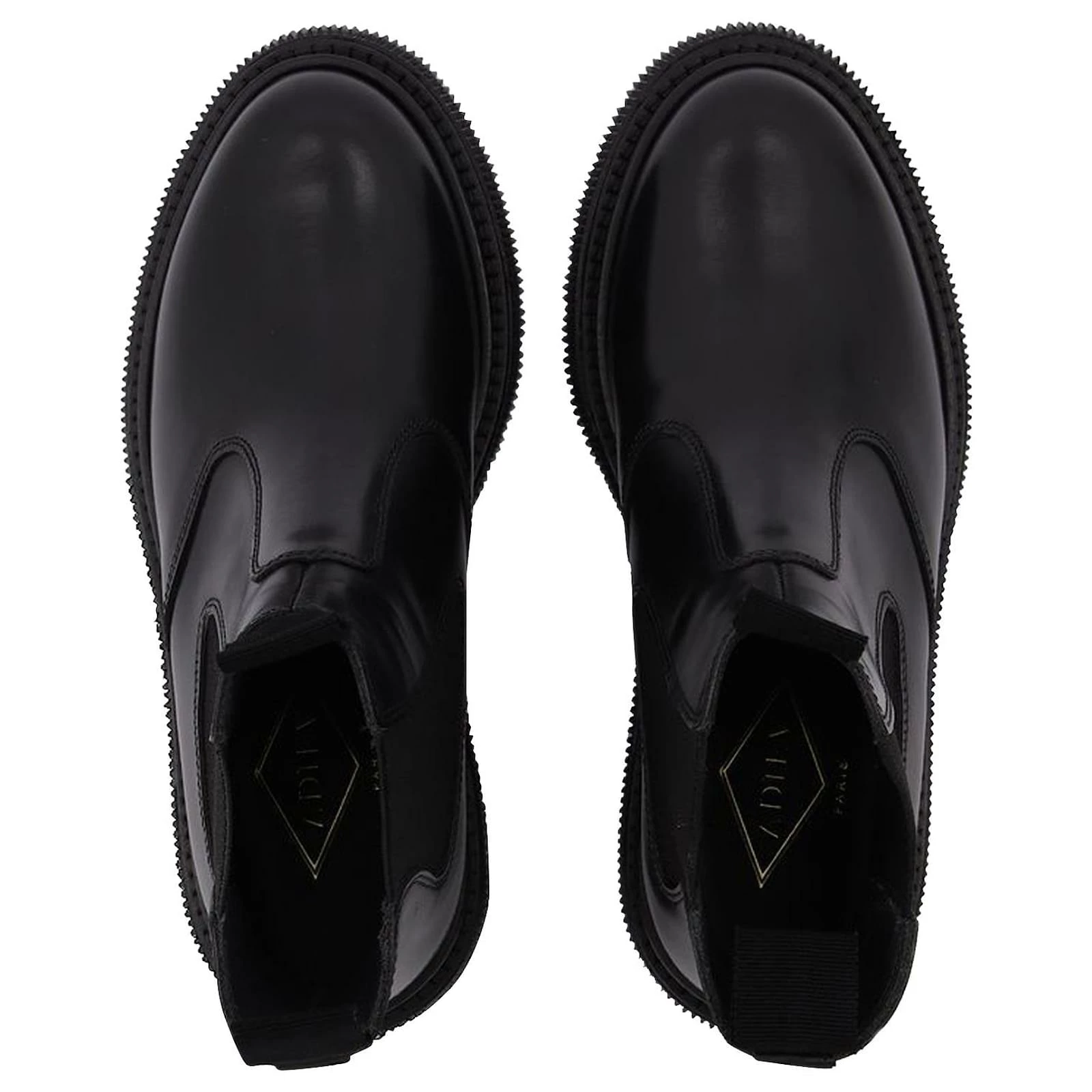These polished leather ankle boots from French label Adieu combine elegance with comfort thanks to their signature injected rubber soles. We love their androgynous feel, and will be wearing ours with box-pleat trousers and a ribbed-knit sweater this winter. Platform: 3.5 cm. Colour : Noir – Black. Main material: smooth calfskin. Sole: rubber. Lining: leather. Closure: slip on. Toe: round. Fit: true to size – Sizing European.
