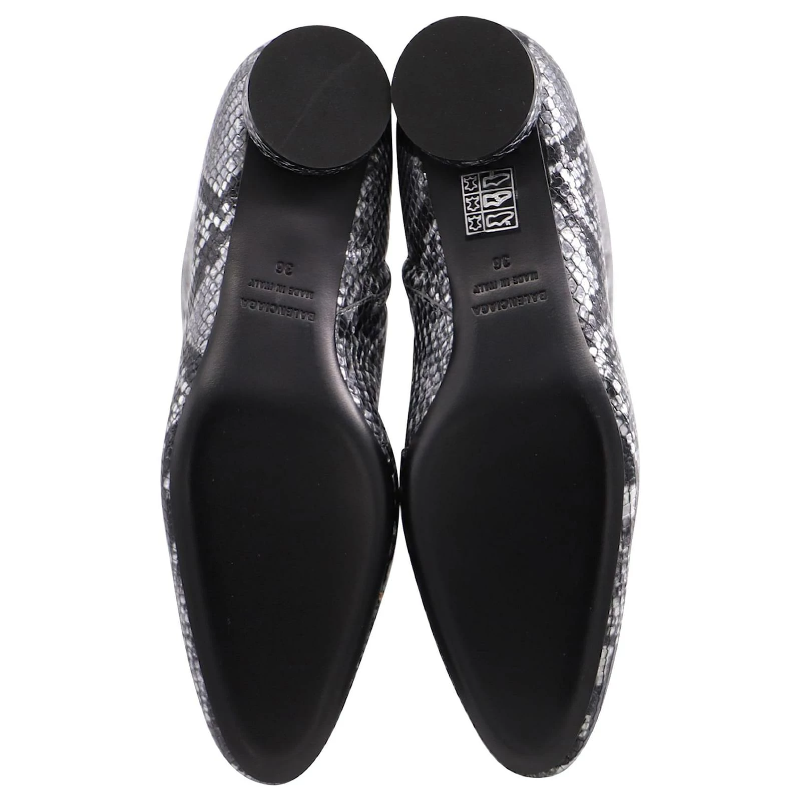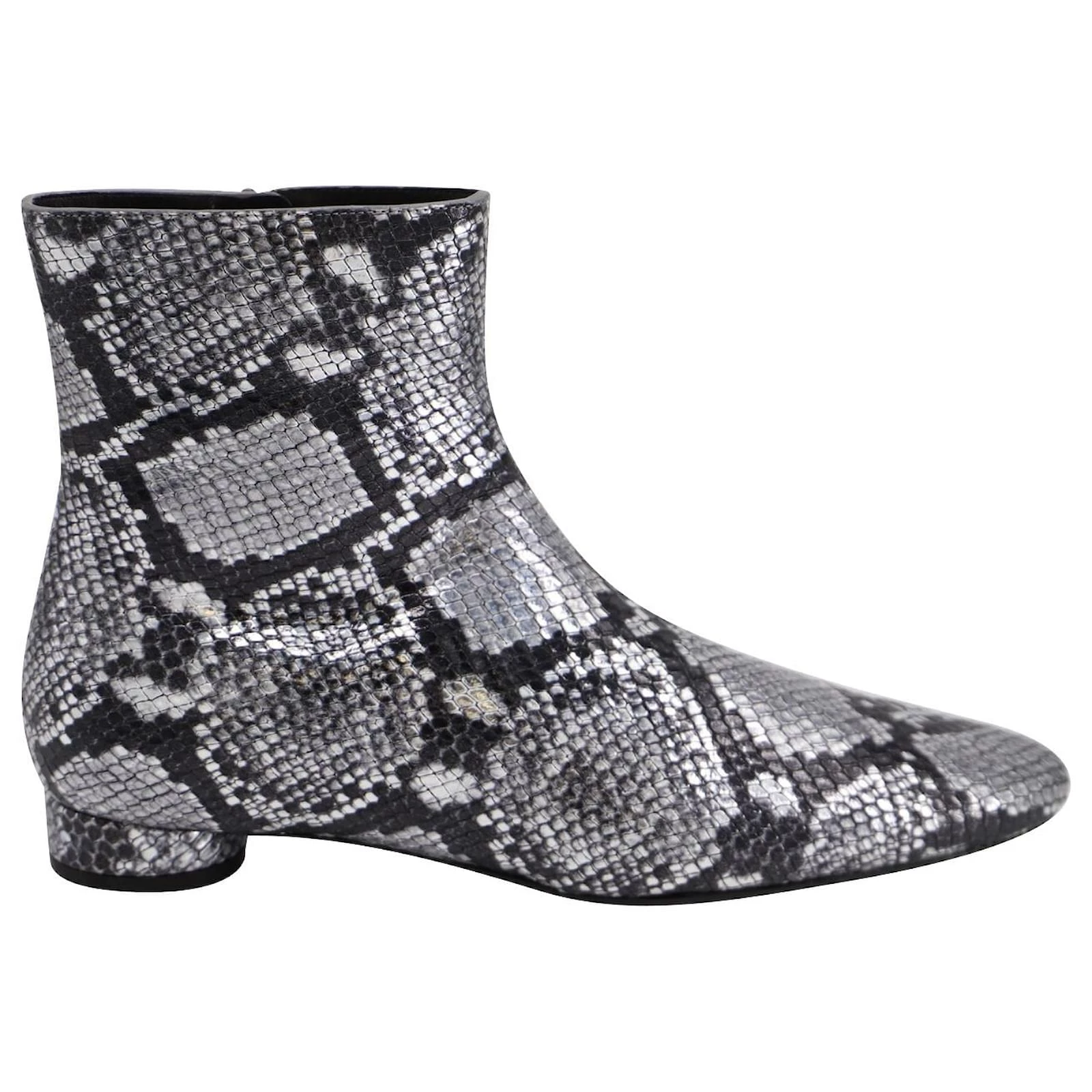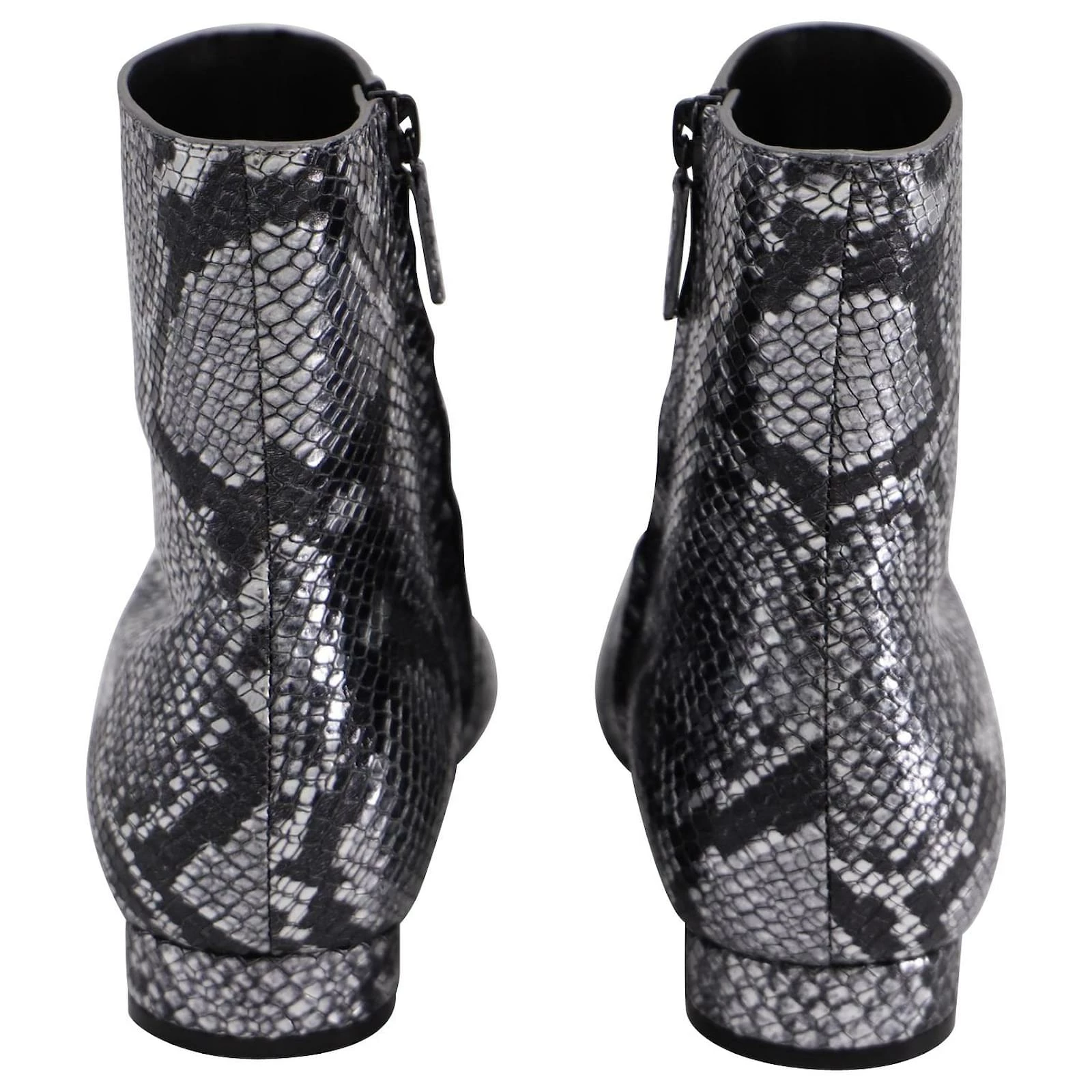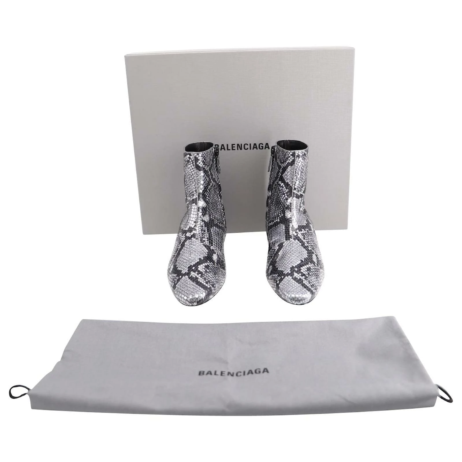 Balenciaga Oval Block-heel Snakeskin-Embossed Ankle Boots in Silver Leather