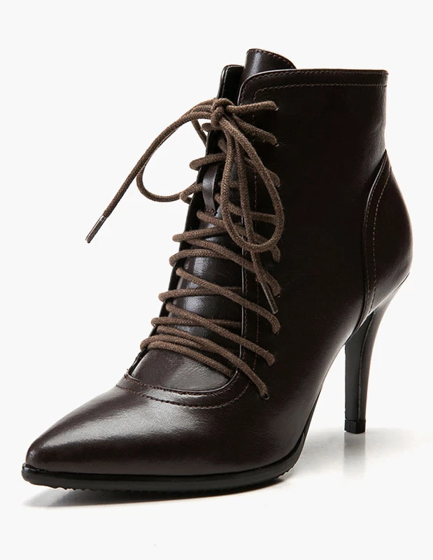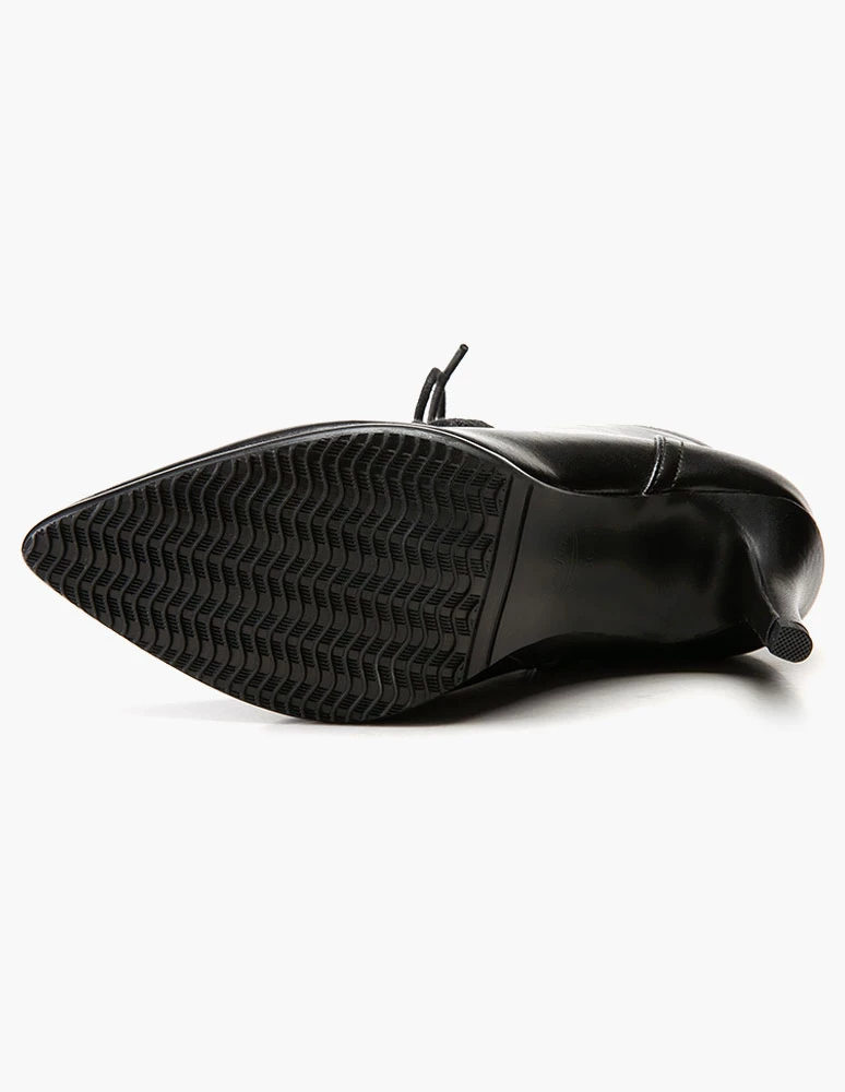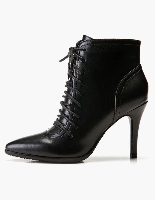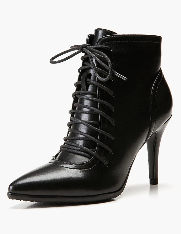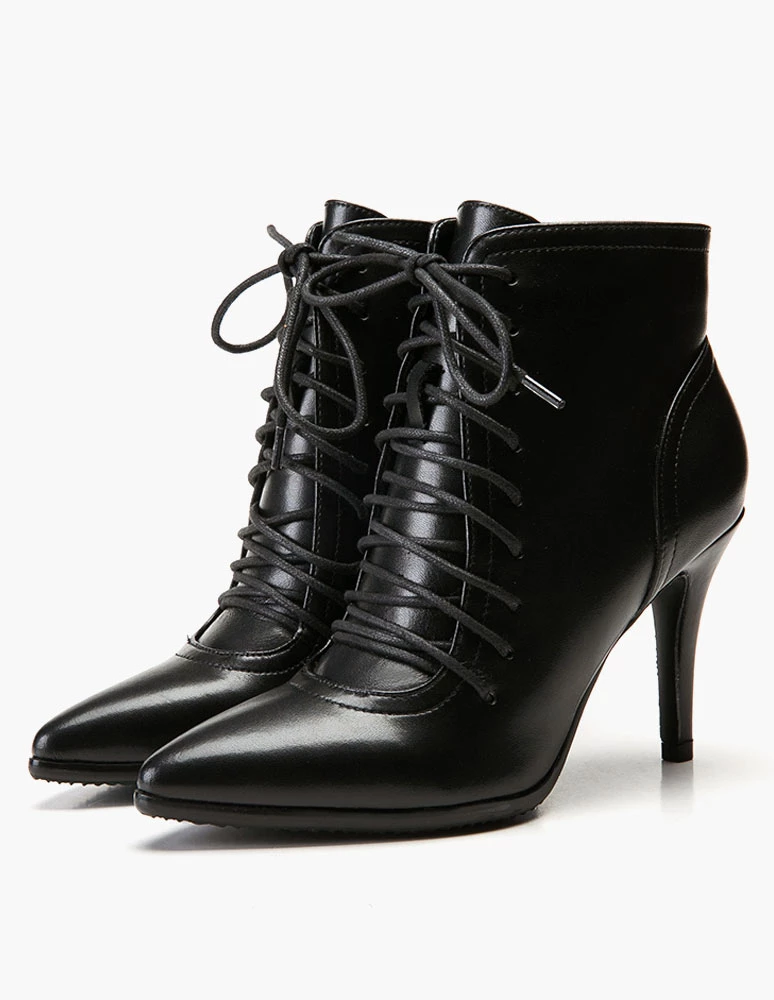 Black Ankle Boots Women Pointed Toe Lace Up High Heel Booties