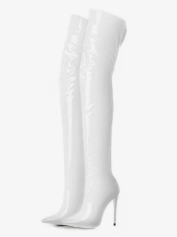 Black Thigh High Boots Womens Patent Bright Leather Pointed Toe Stiletto Heel Over The Knee Boots