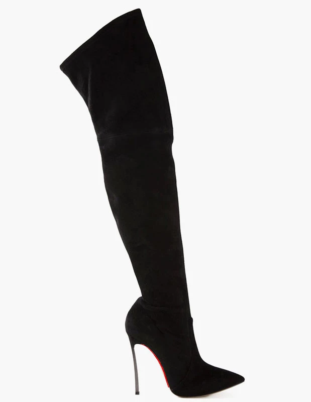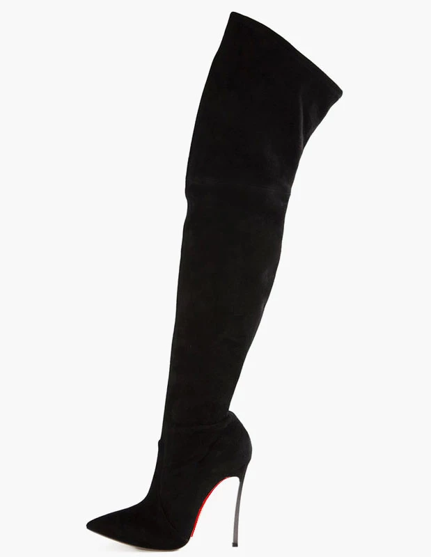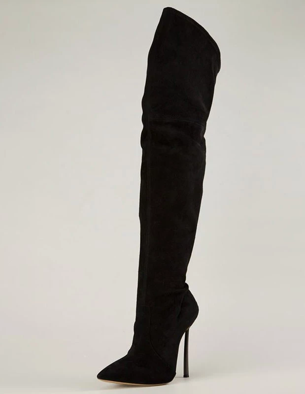 Black Thigh High Boots Womens Velvet Pointed Toe Stiletto Heel Over The Knee Boots
