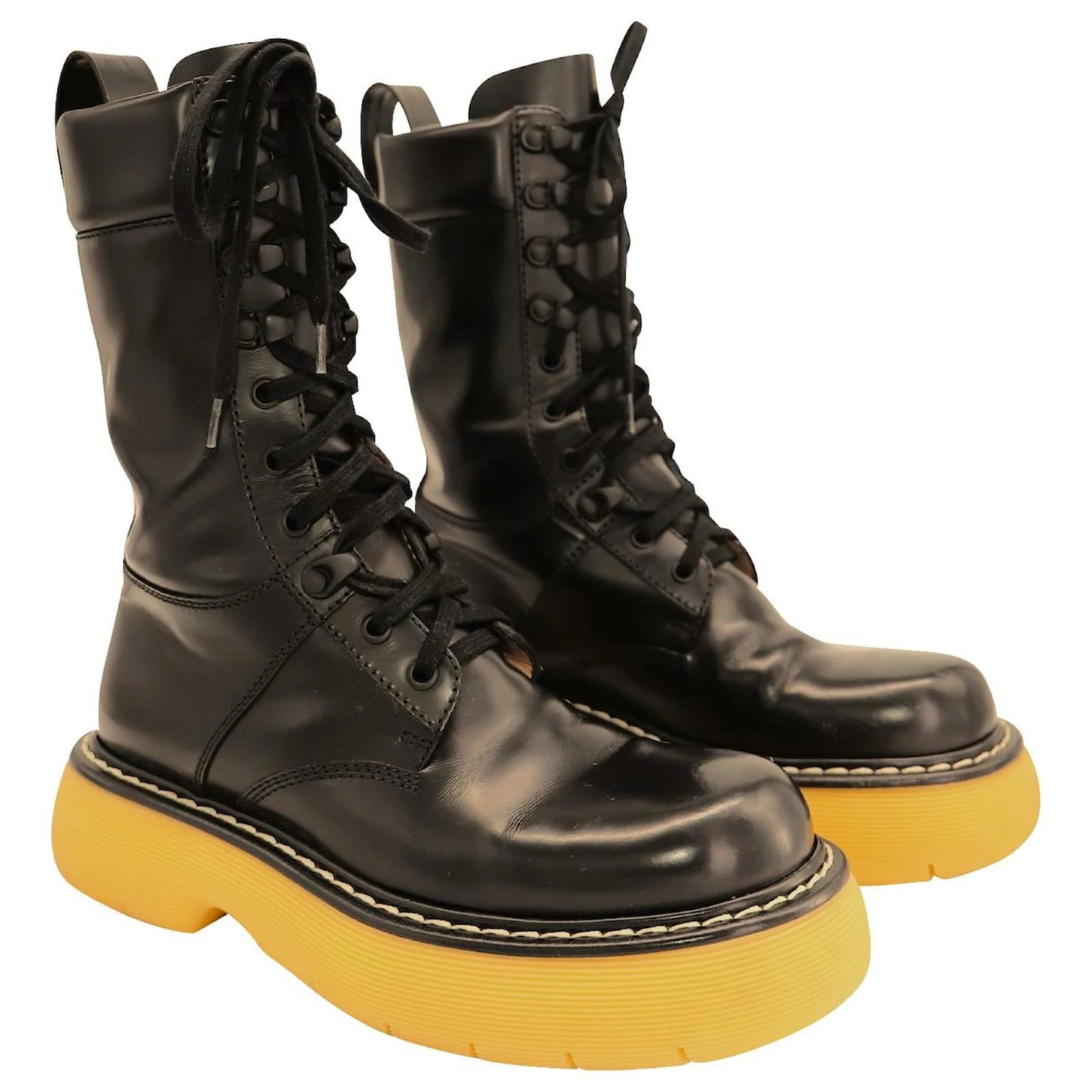 Bottega Veneta Bounce Lace-Up Boots in Black Leather