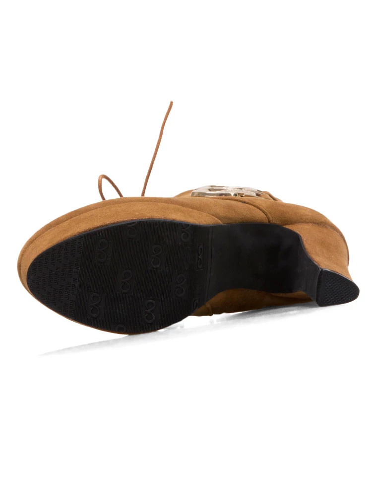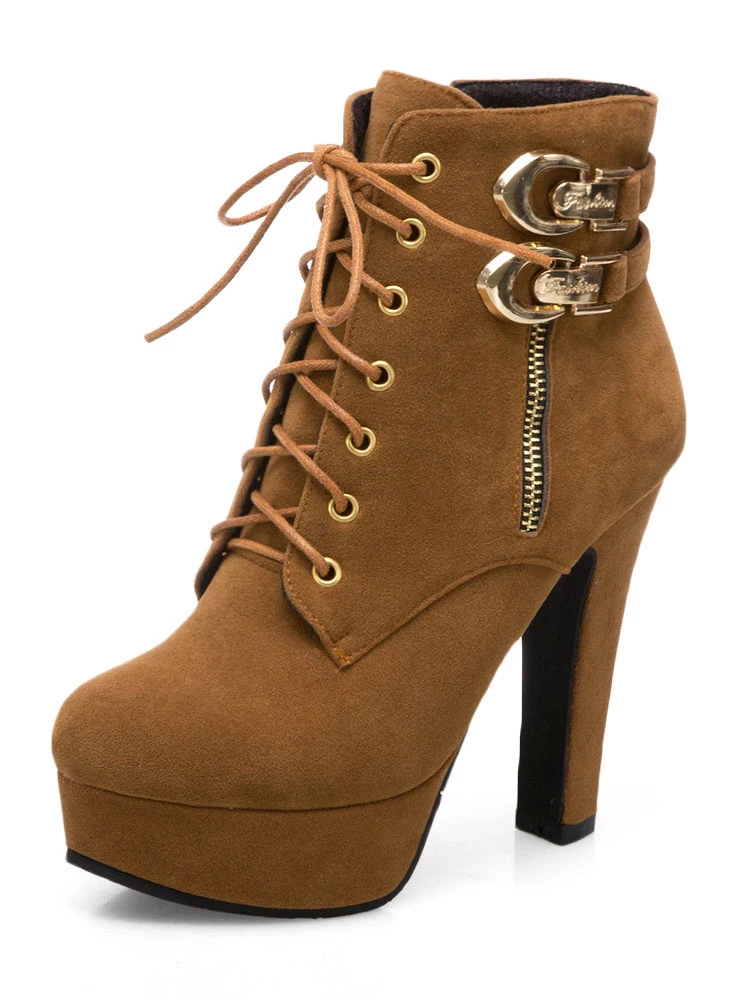 Brown Ankle Boots Suede Platform Buckle Detail Lace Up High Heel Boots
