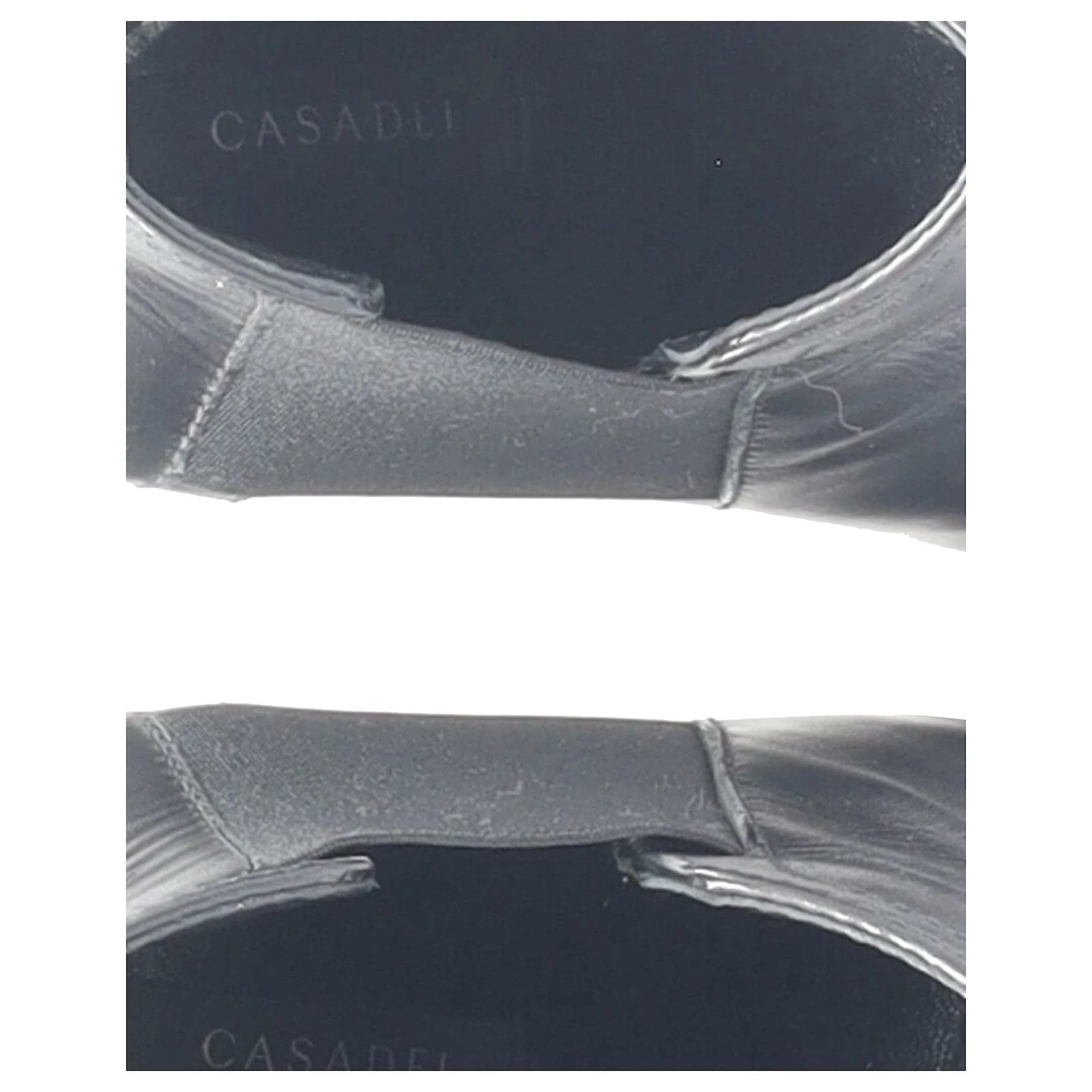 sign of wear: fair creasing of leather on the vamps, fair sign of wear on insoles and soles, fair lint on shoes