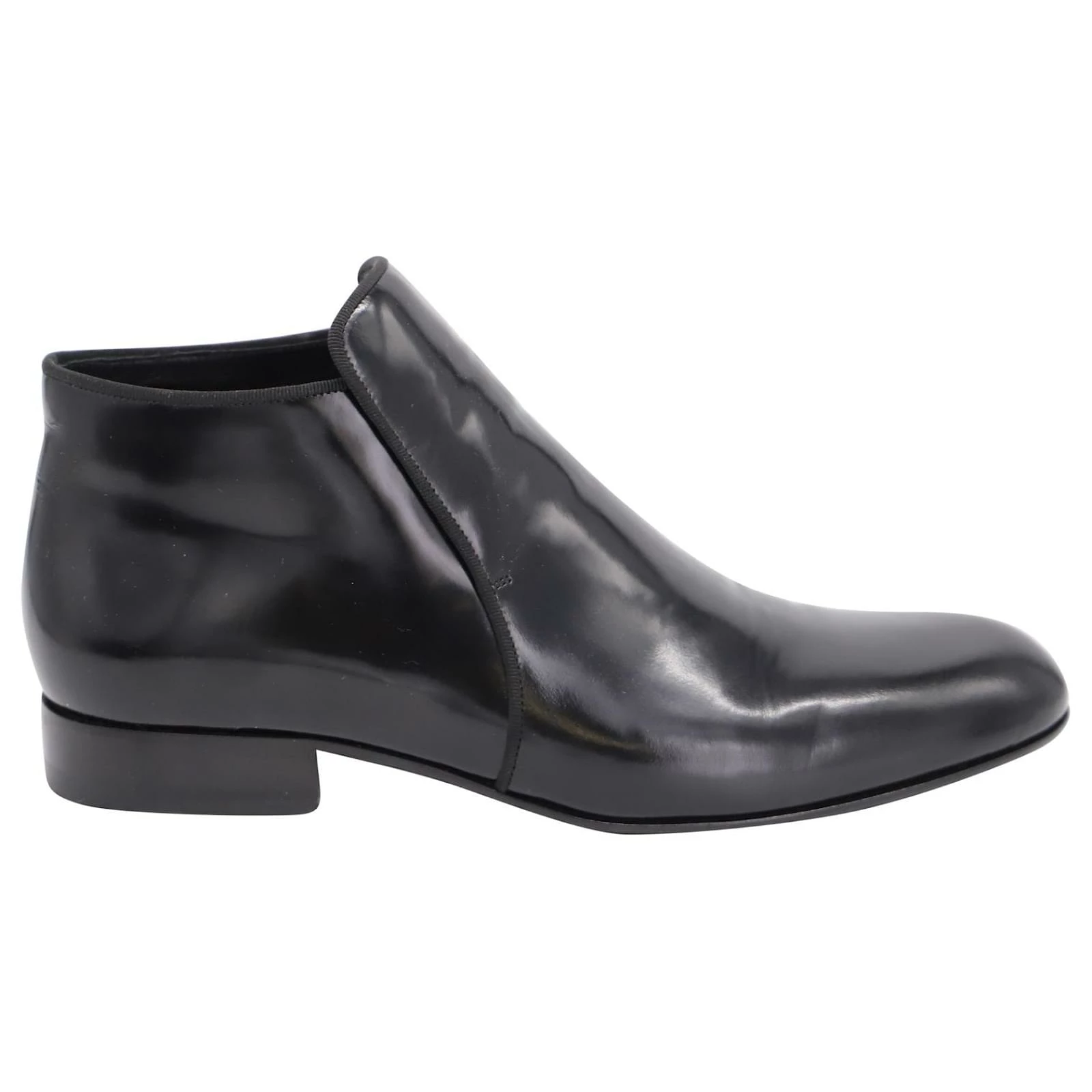 Stay on top of the fashion game with these Celine boots. They come made from shiny leather on the exterior and are equipped with almond toes, slip-on, and block heel. Let your luxe style be highlighted as you wear these boots!
