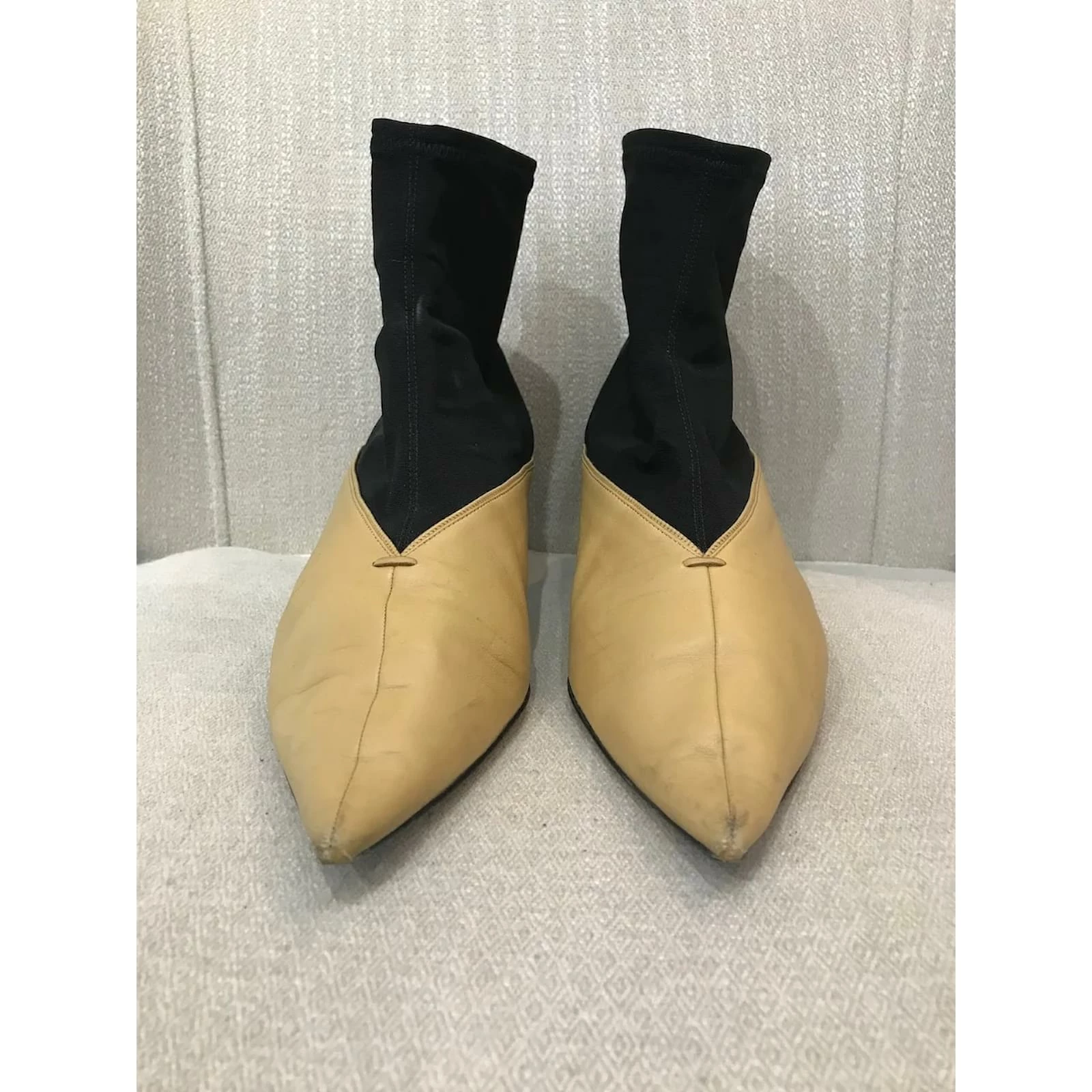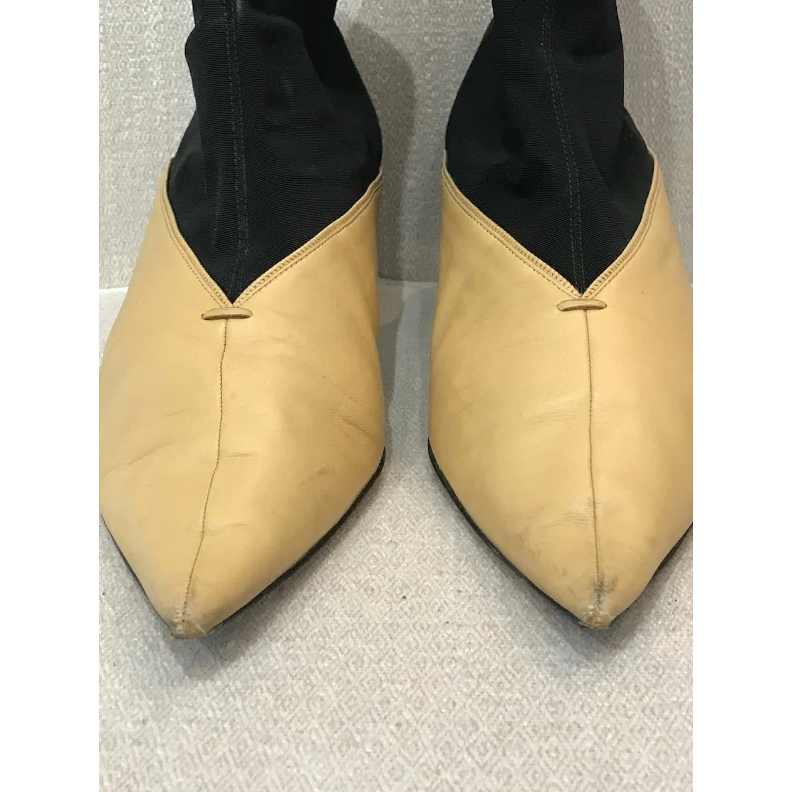 Celine boots, size 41. Boots in beige leather and black fabric, small heel and pointed end. Zip on the back. Height height 6 cm. Good condition: we can note marks on ends and hitching heels (see photos).
