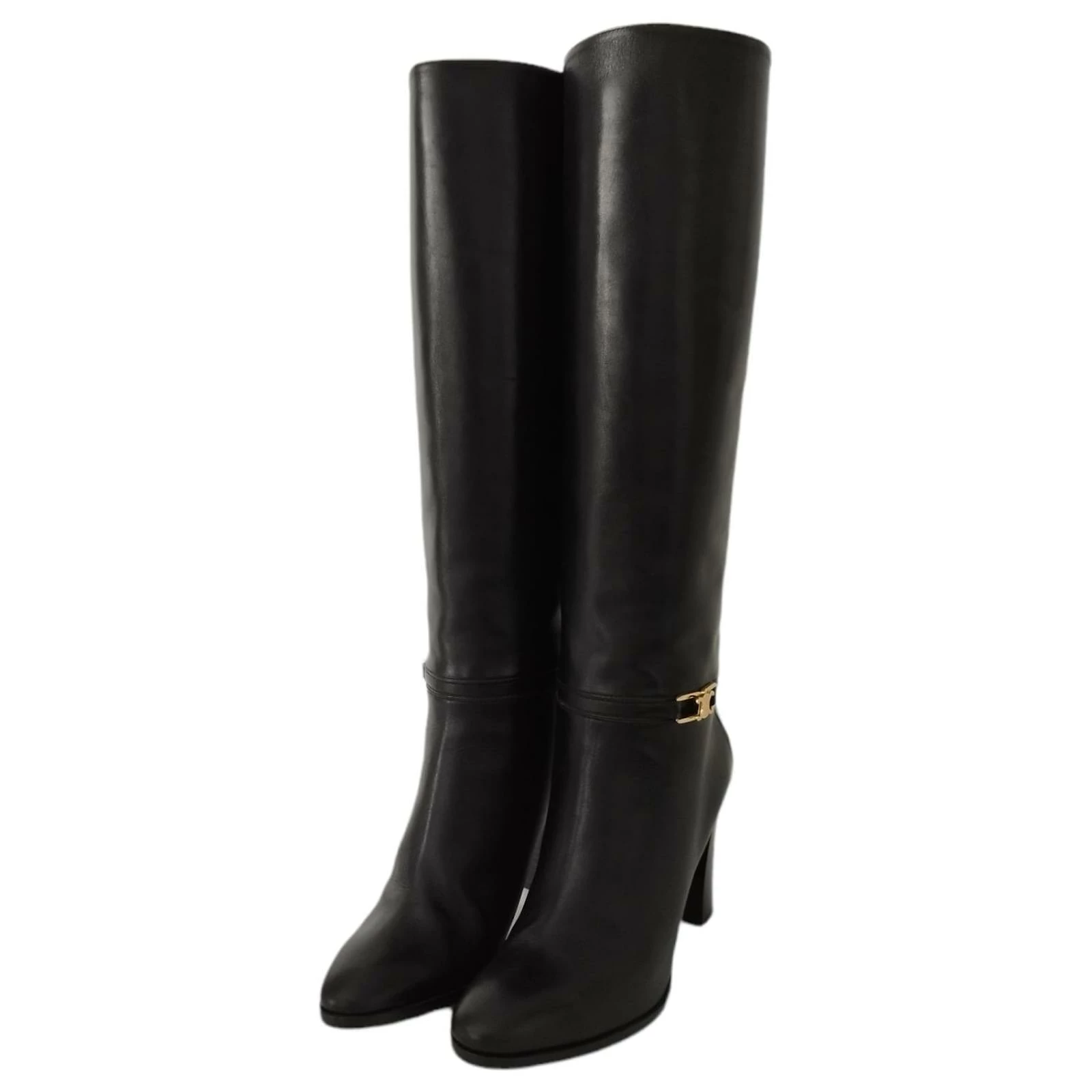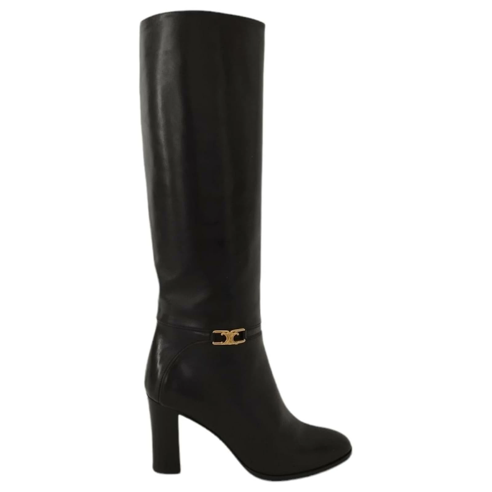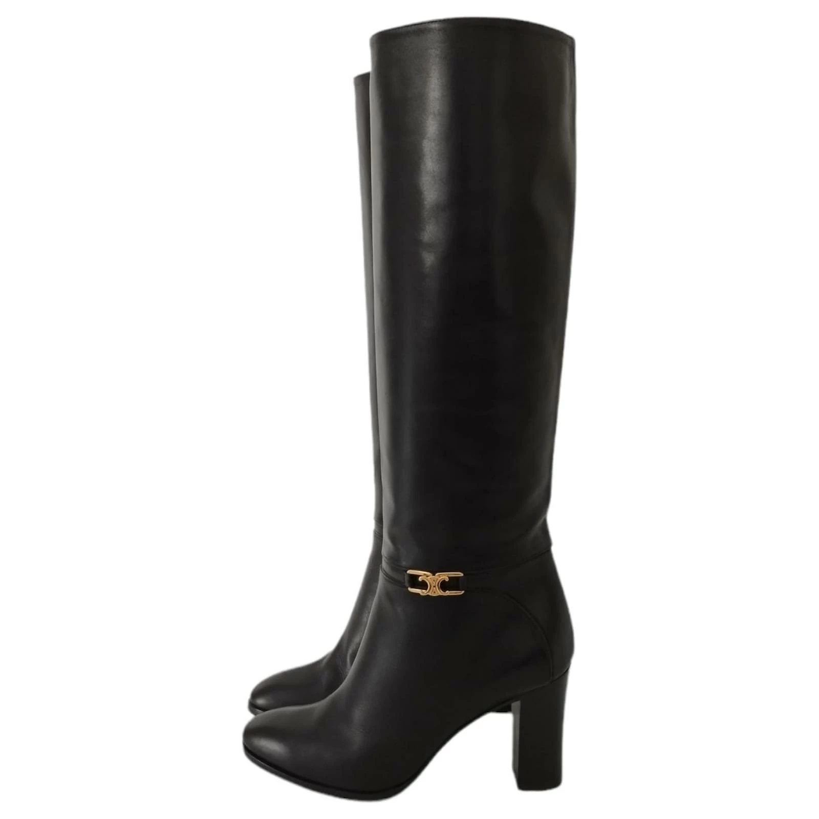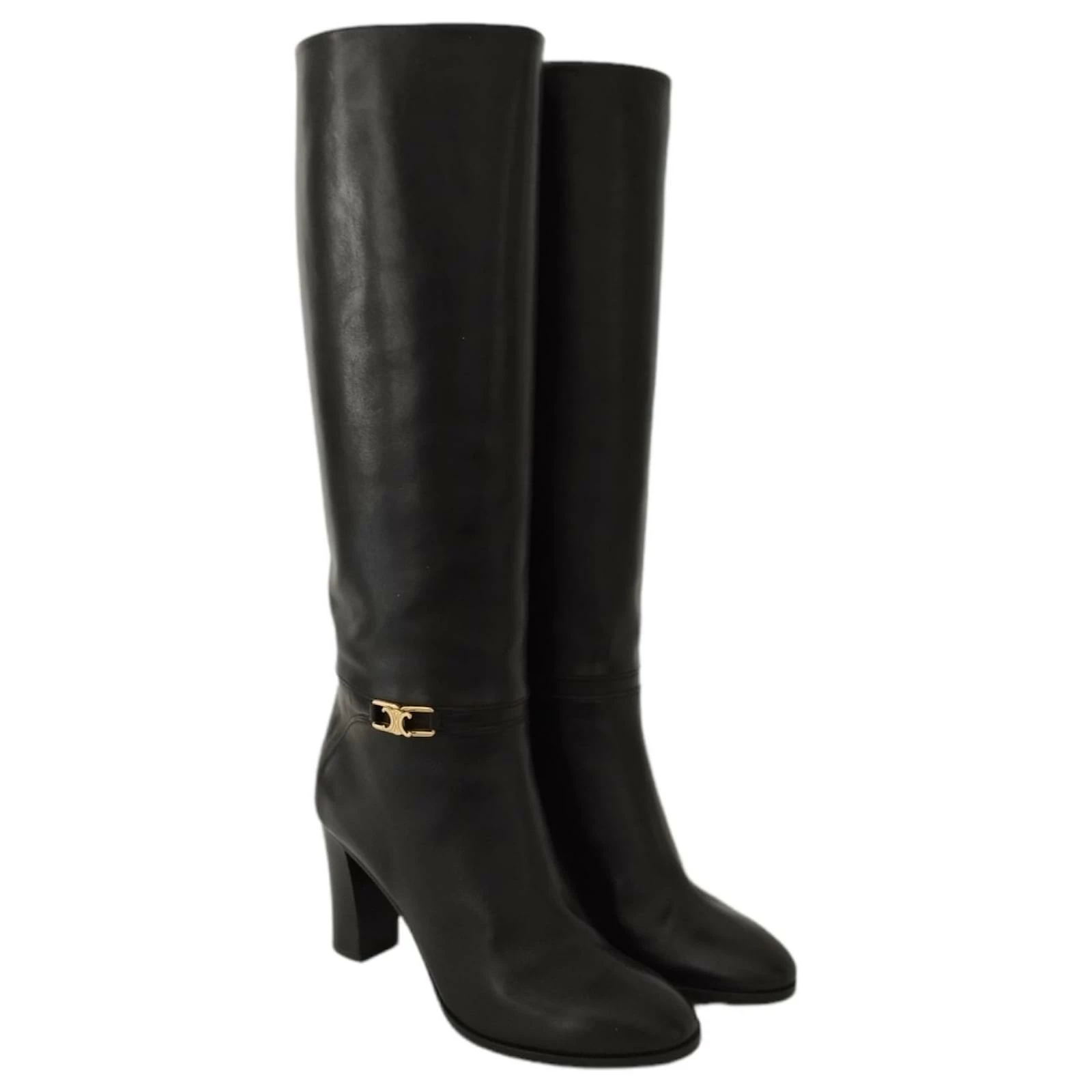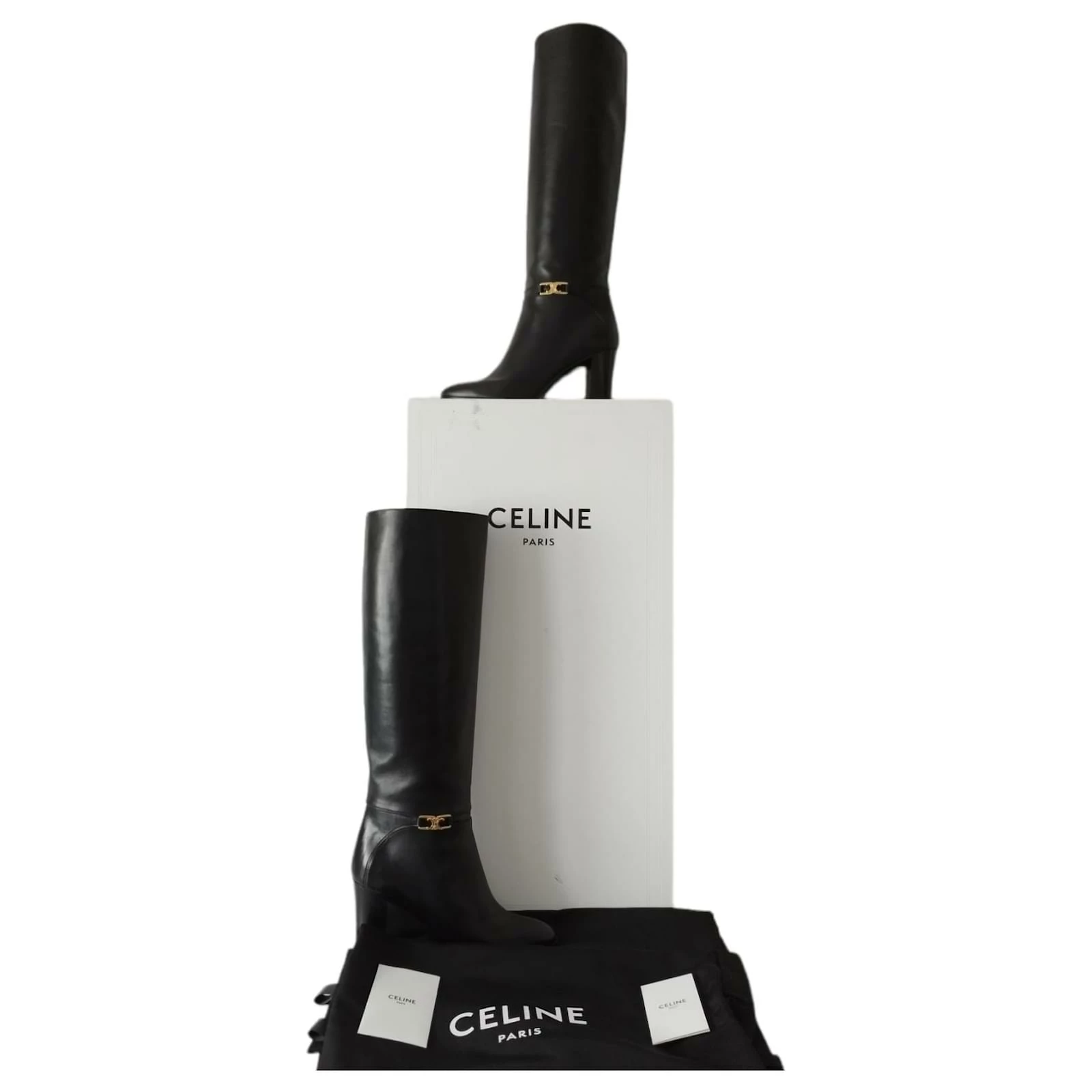 Triomphe logo signed Celine in gold metal on the outer side of the boots.