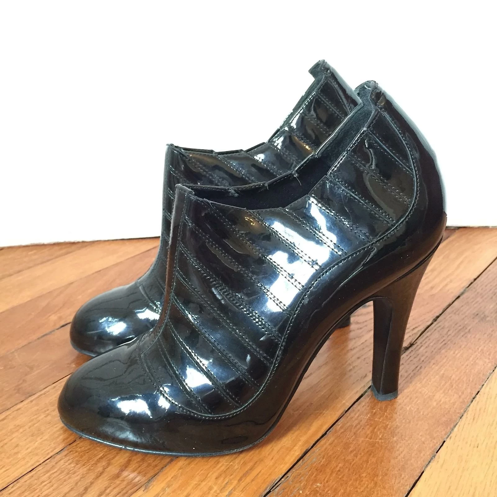 CHANEL Ankle Boots T.eu 37.5 Patent Leather Black