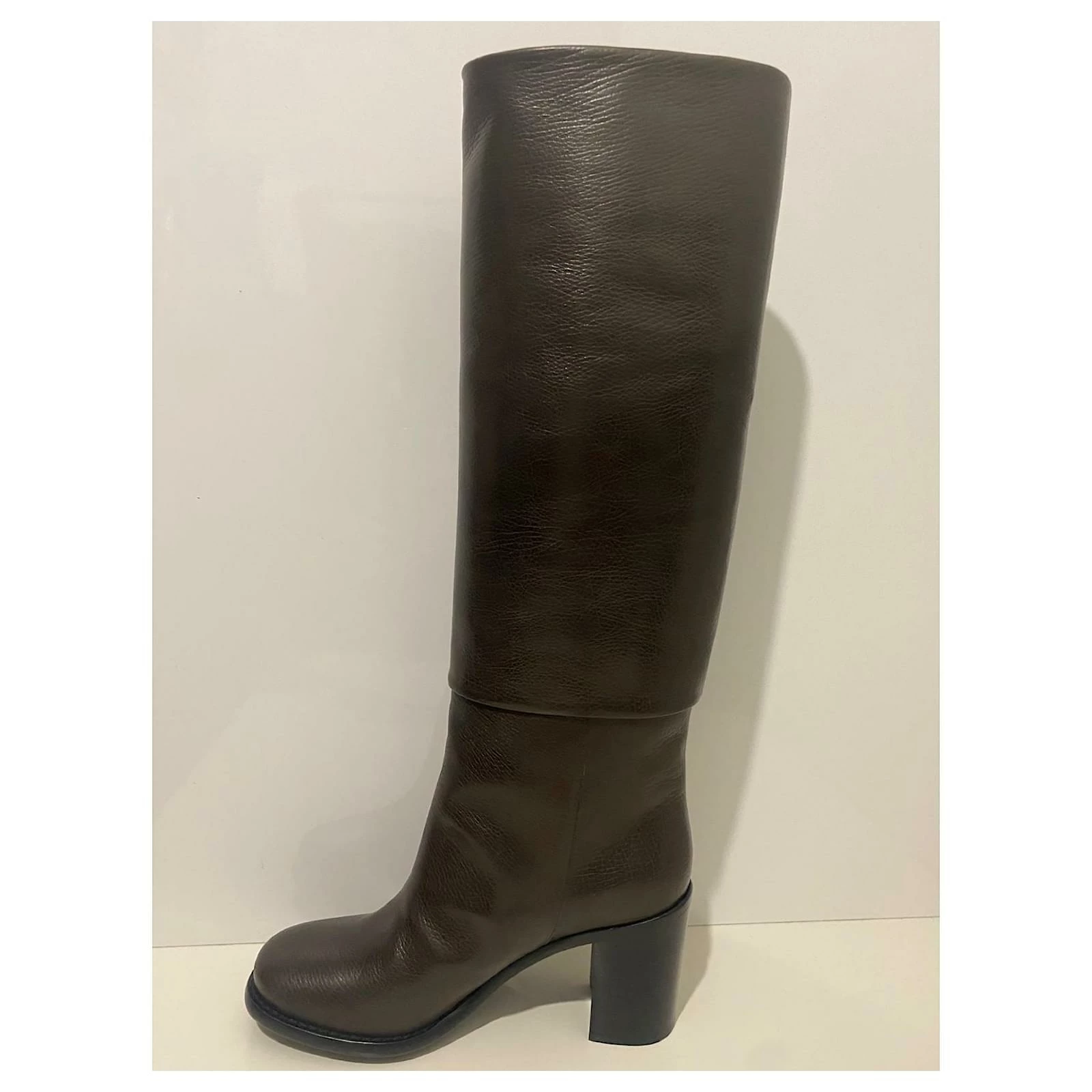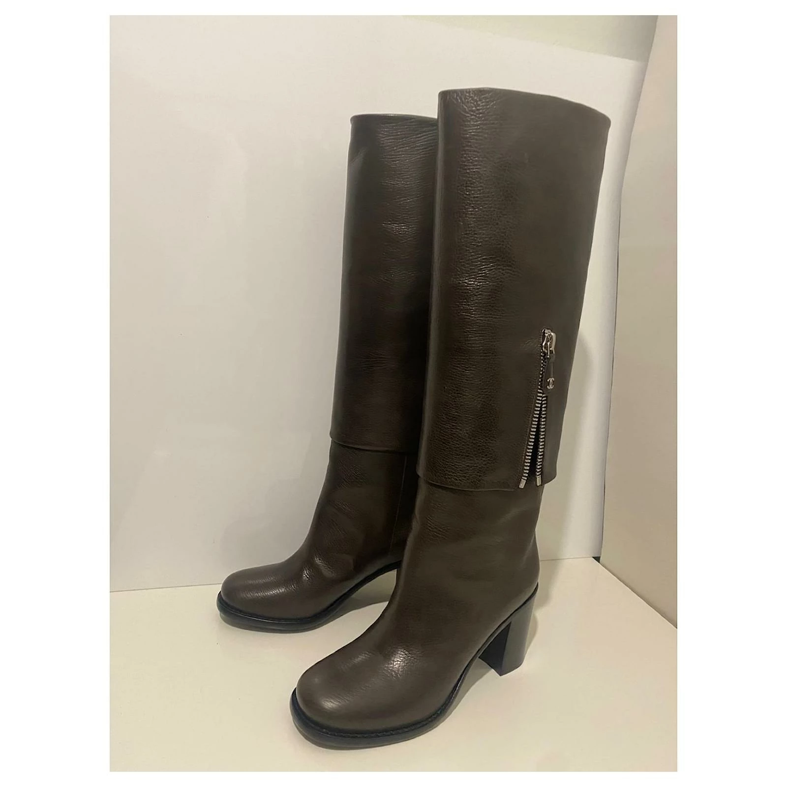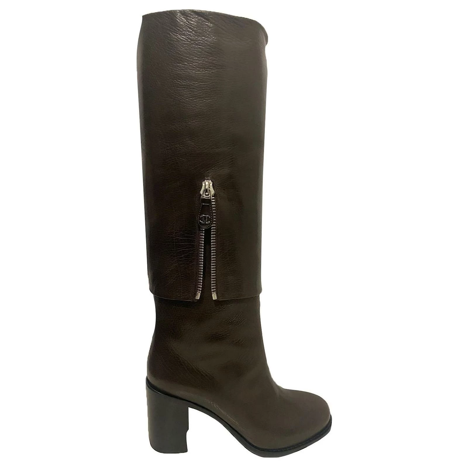 Classic Brown Leather boots, with CC details on the side zip.