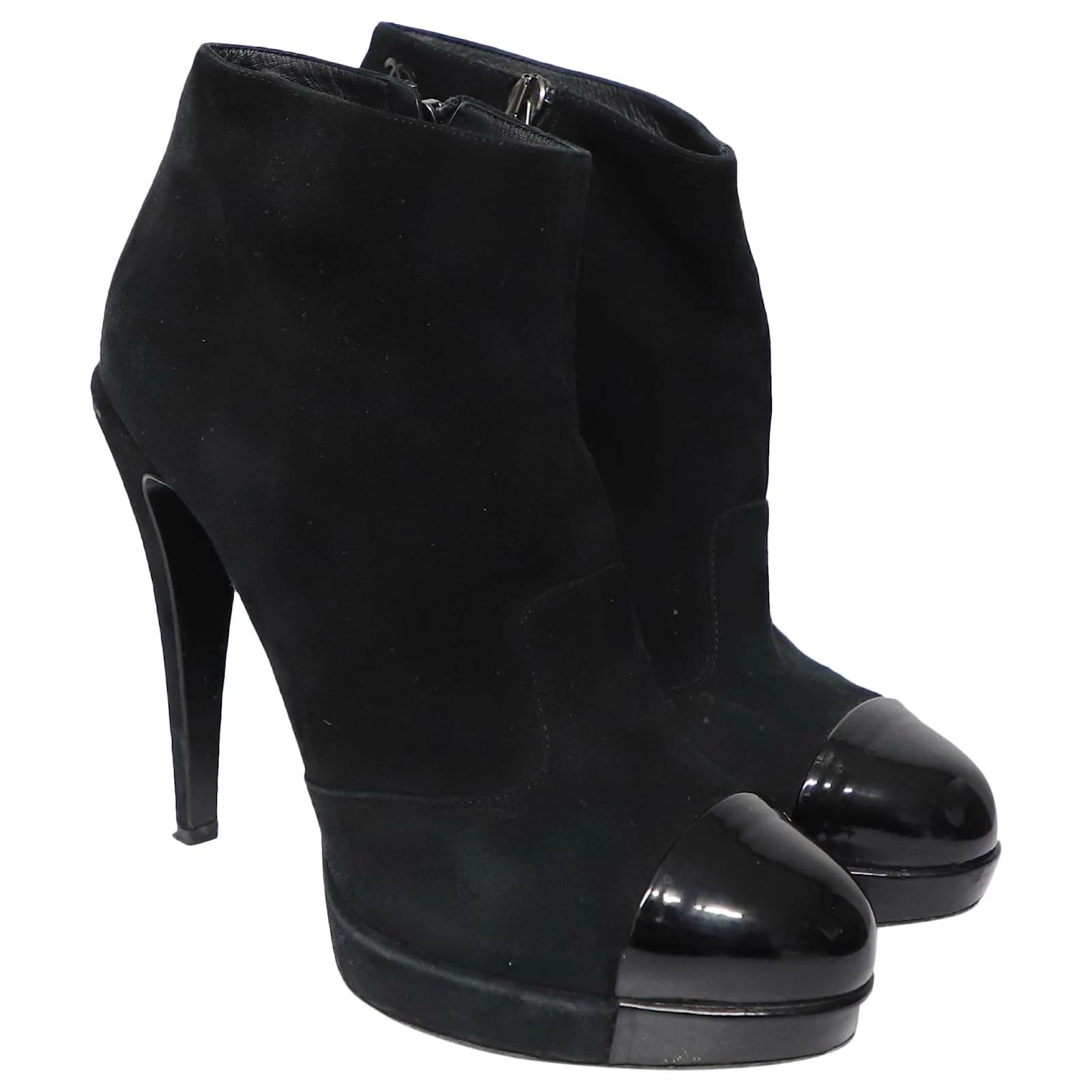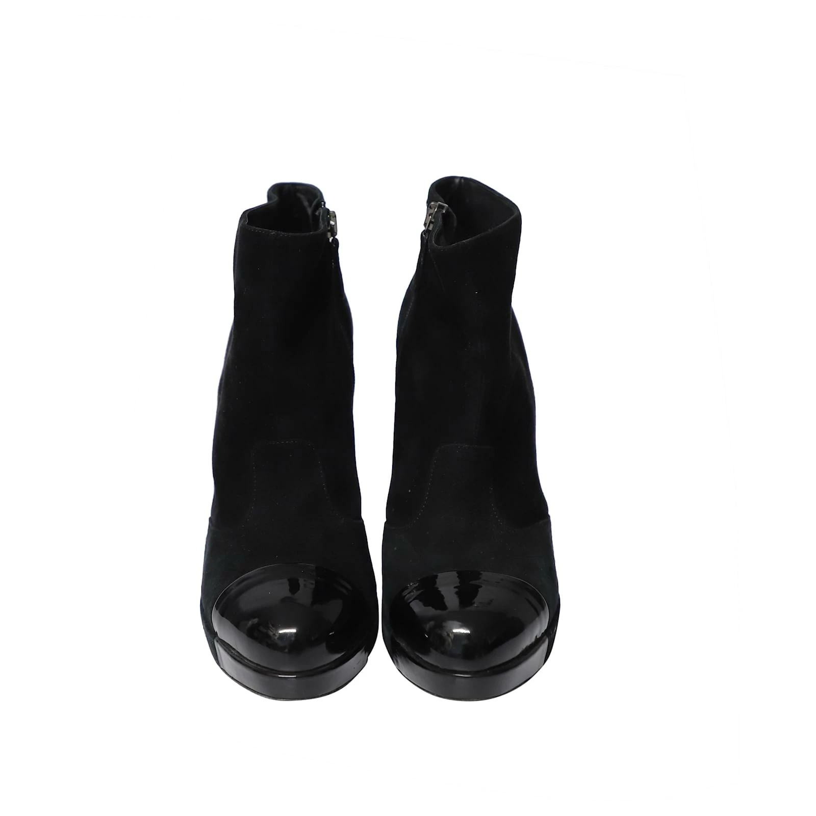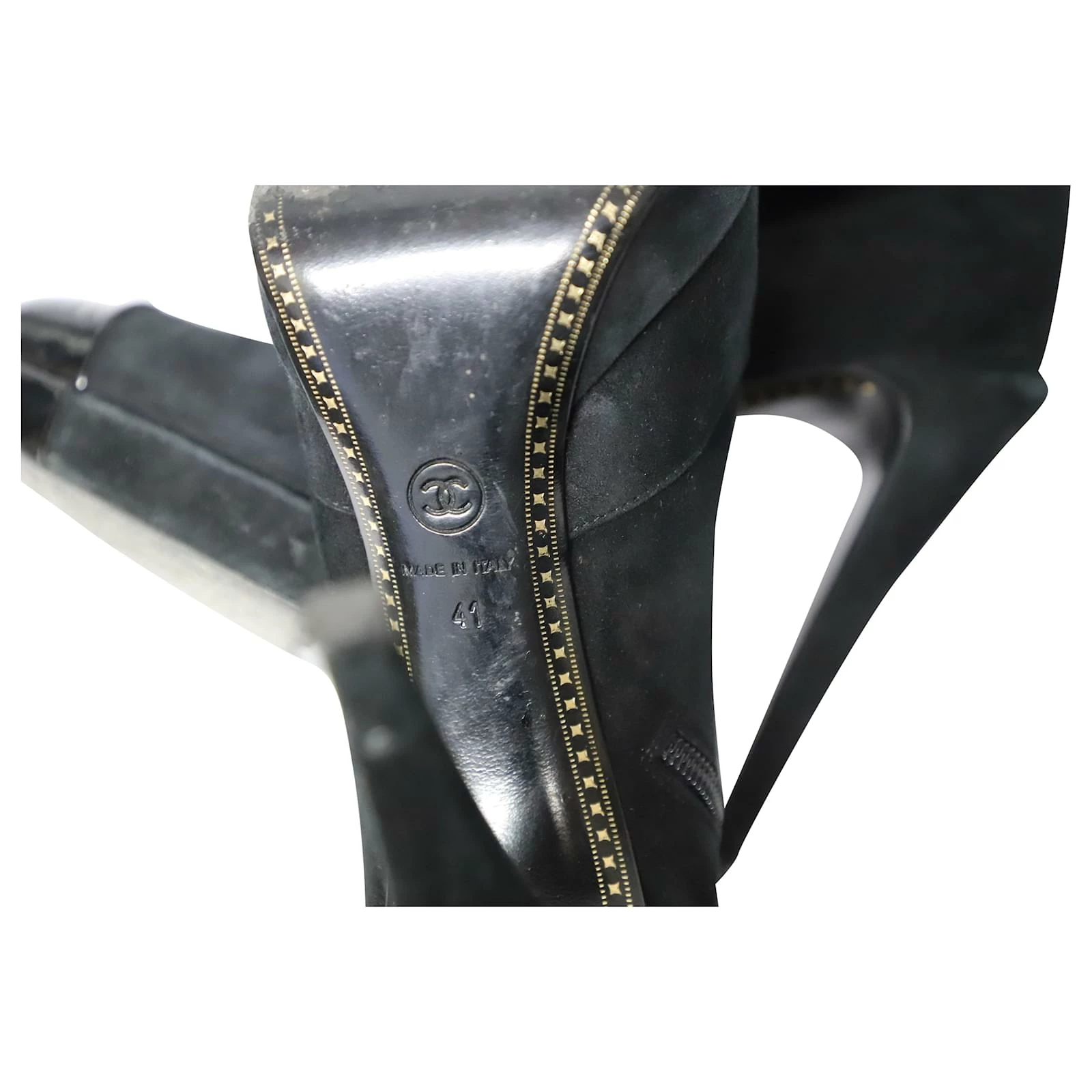 Chanel Patent Leather Cap Toe Platform Ankle Boots in Black Suede