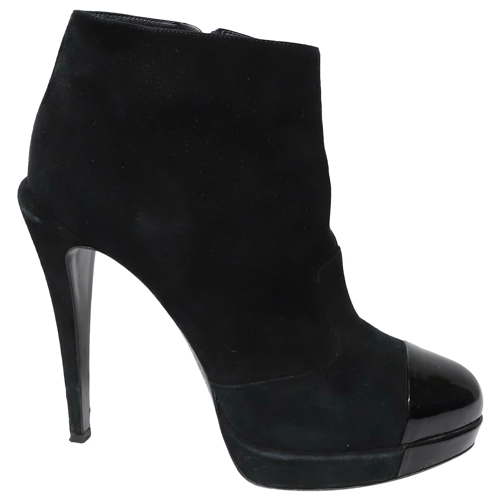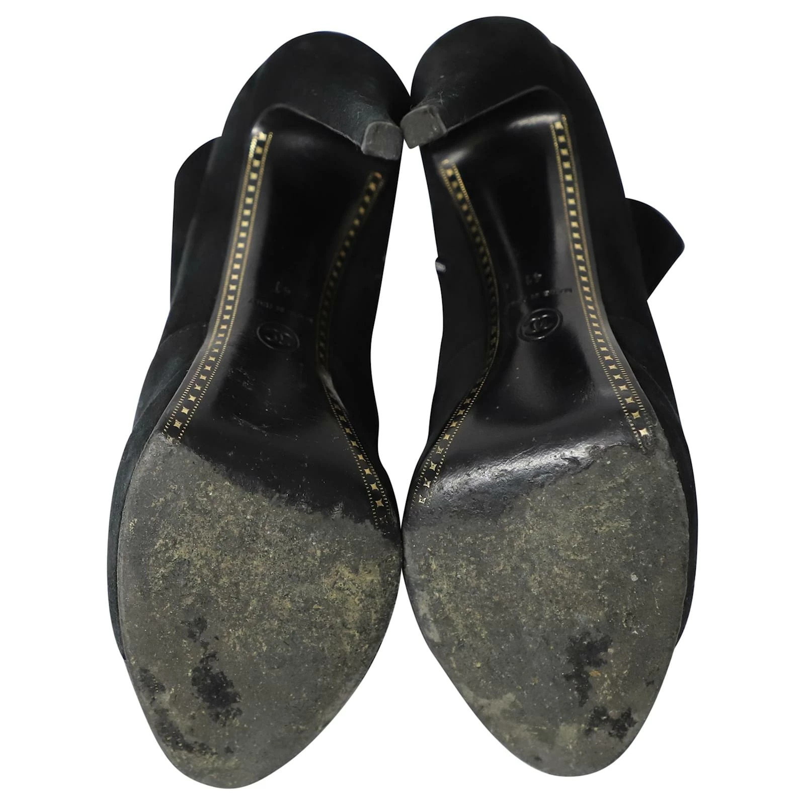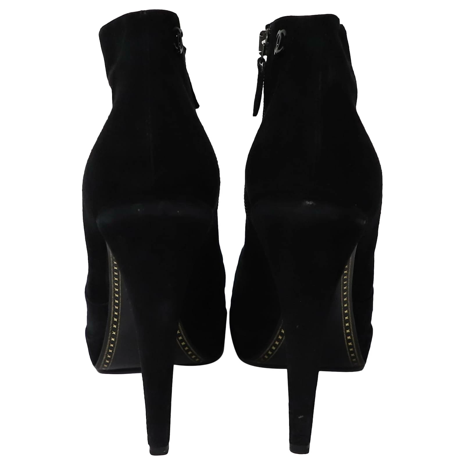 Chanel Patent Leather Cap Toe Platform Ankle Boots in Black Suede
