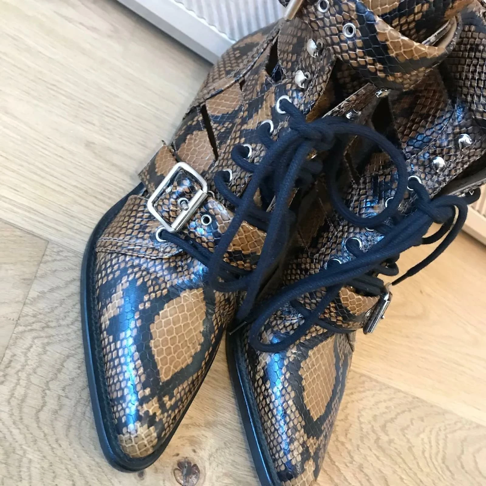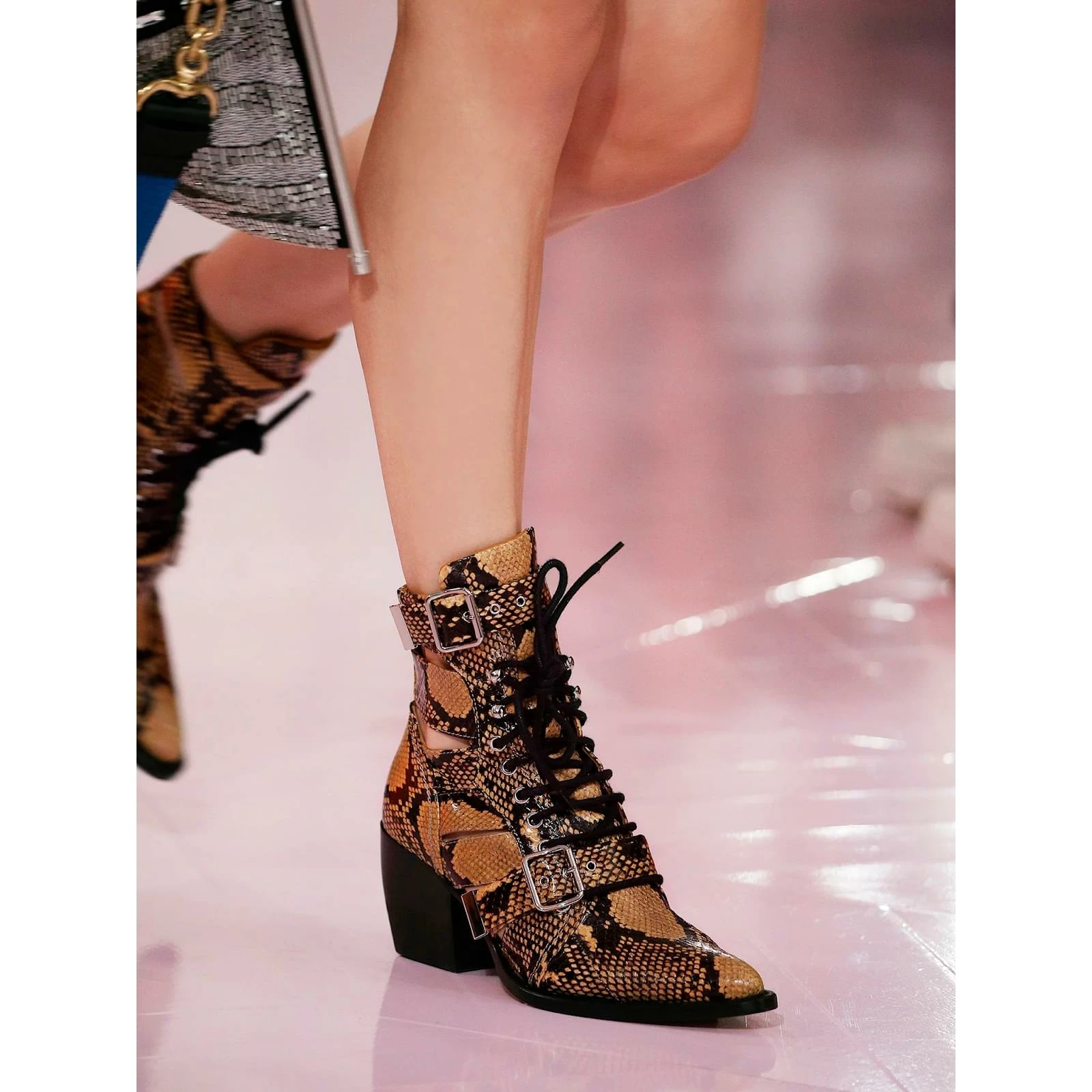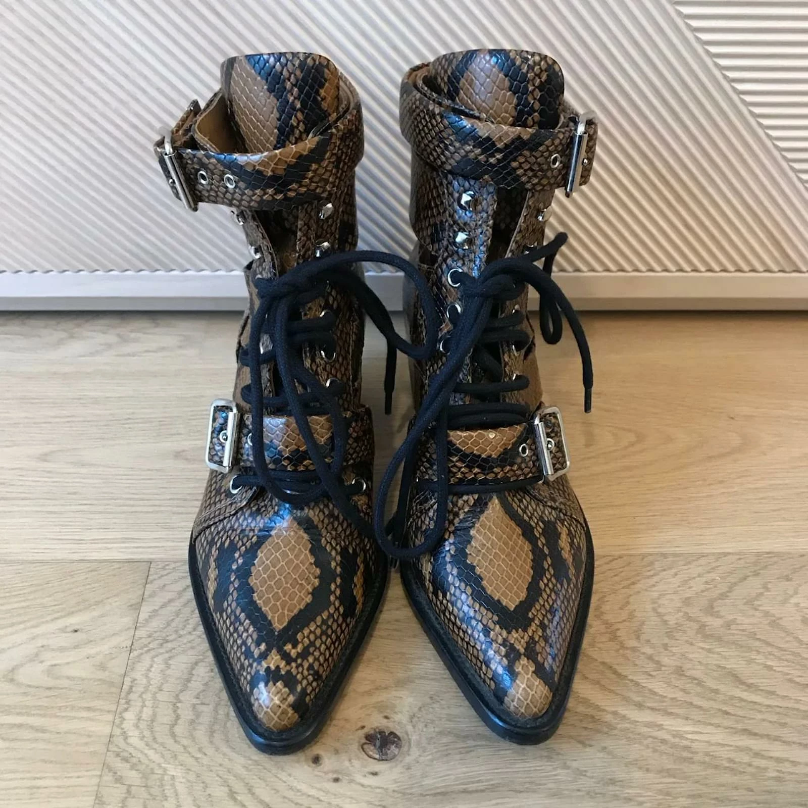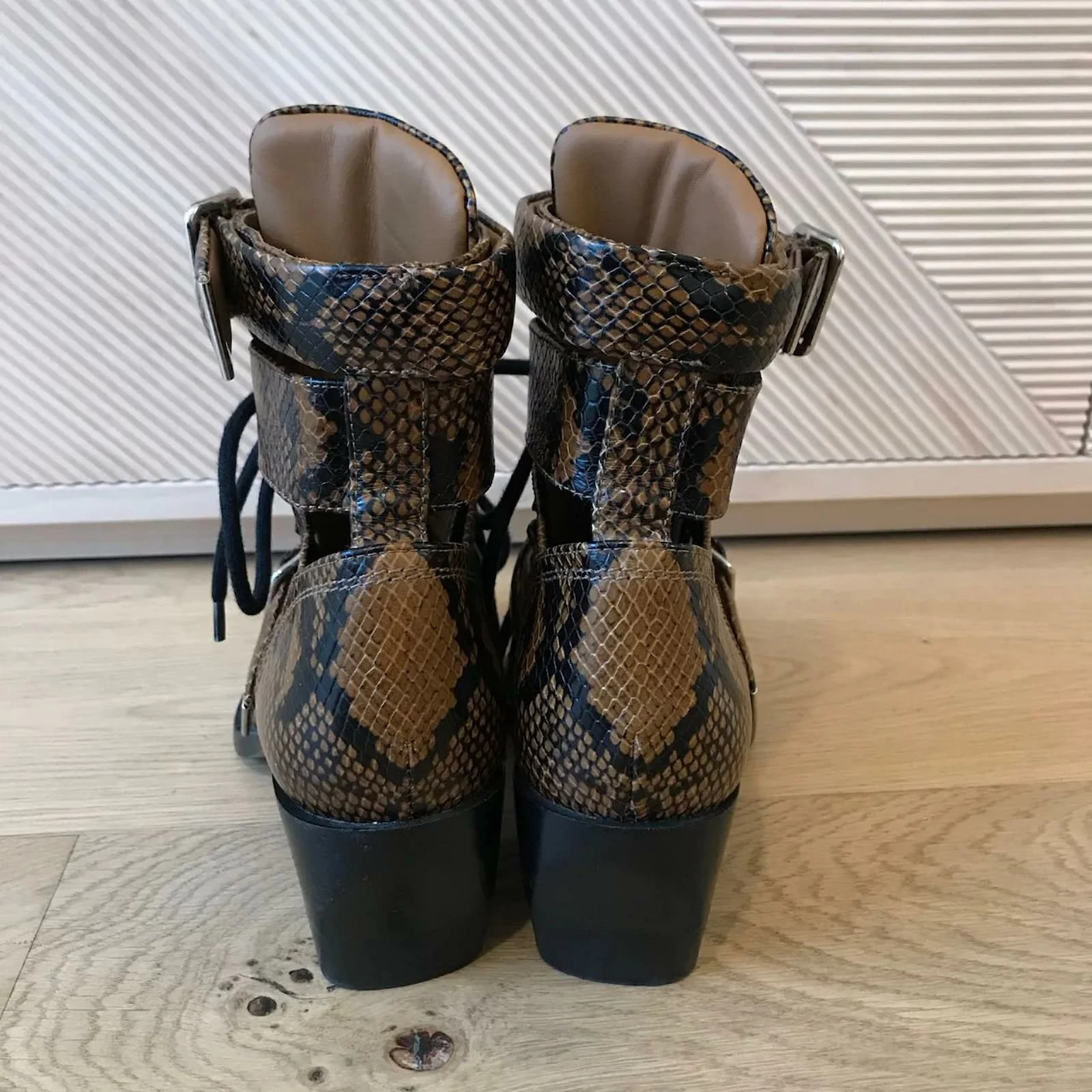 Boots Chloé, ‘Rylee’ model. Size 38, shoes small. Python printed veal leather boots with laces and ankle flange with loop closure. Heel height: 6 cm. Excellent condition.
