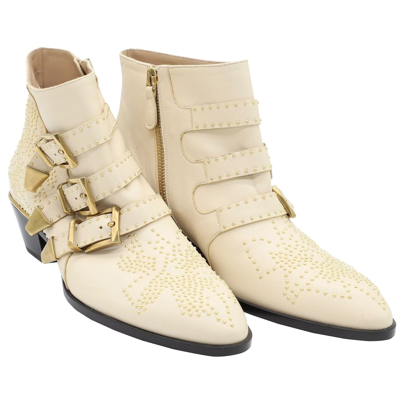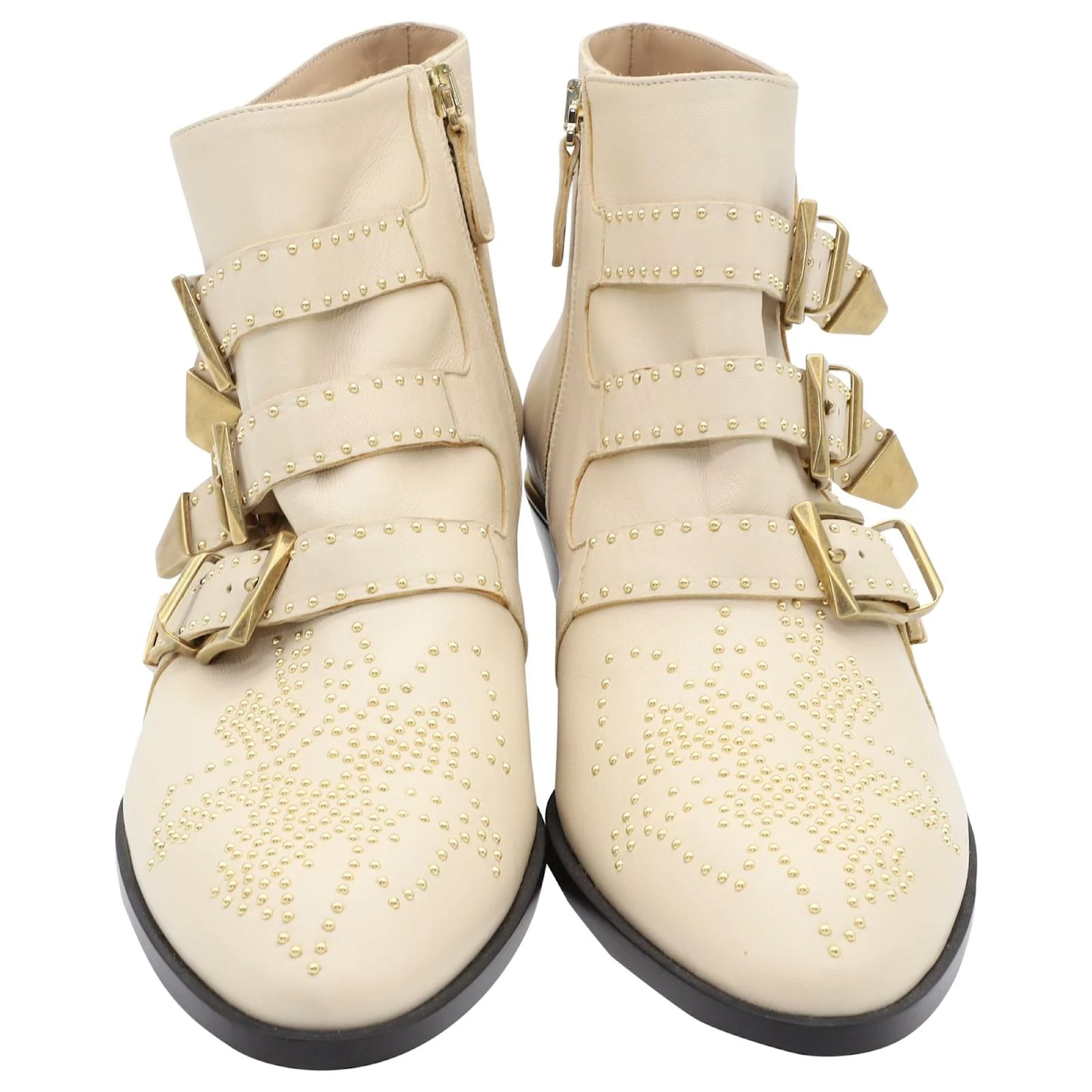 Chloé Susanna Ankle Boots 30 In Beige Leather