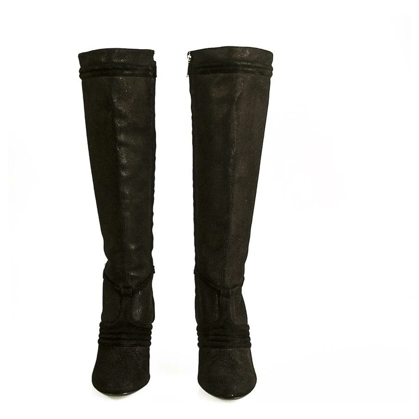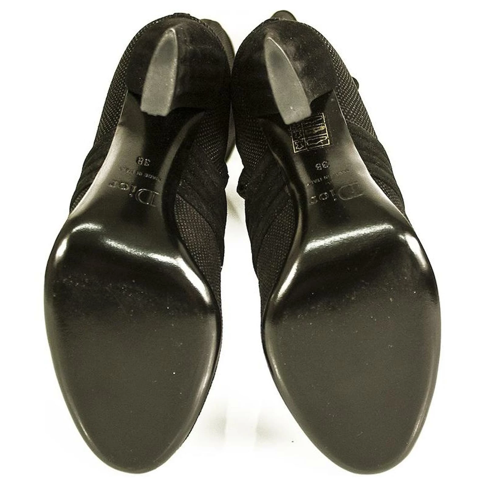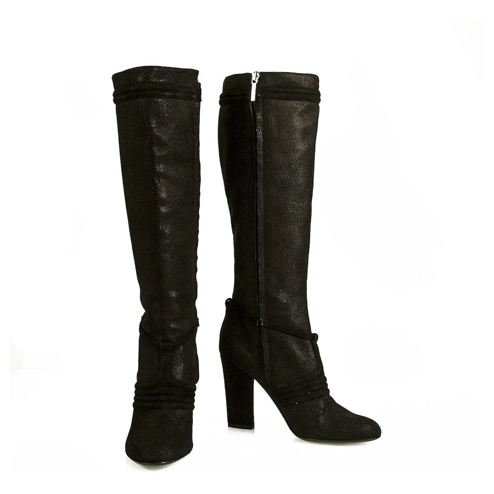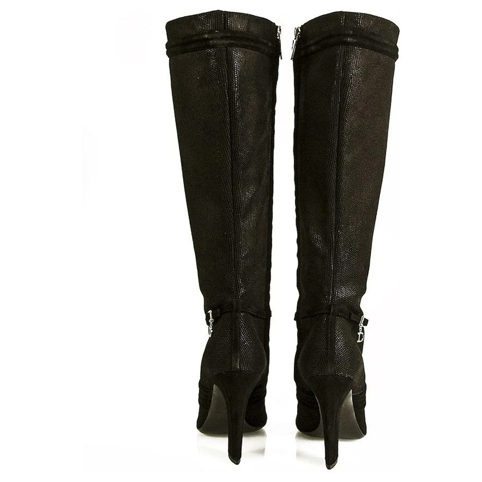 Dior Black Leather and Suede Knee Height Boots High Heels Shoes size 38