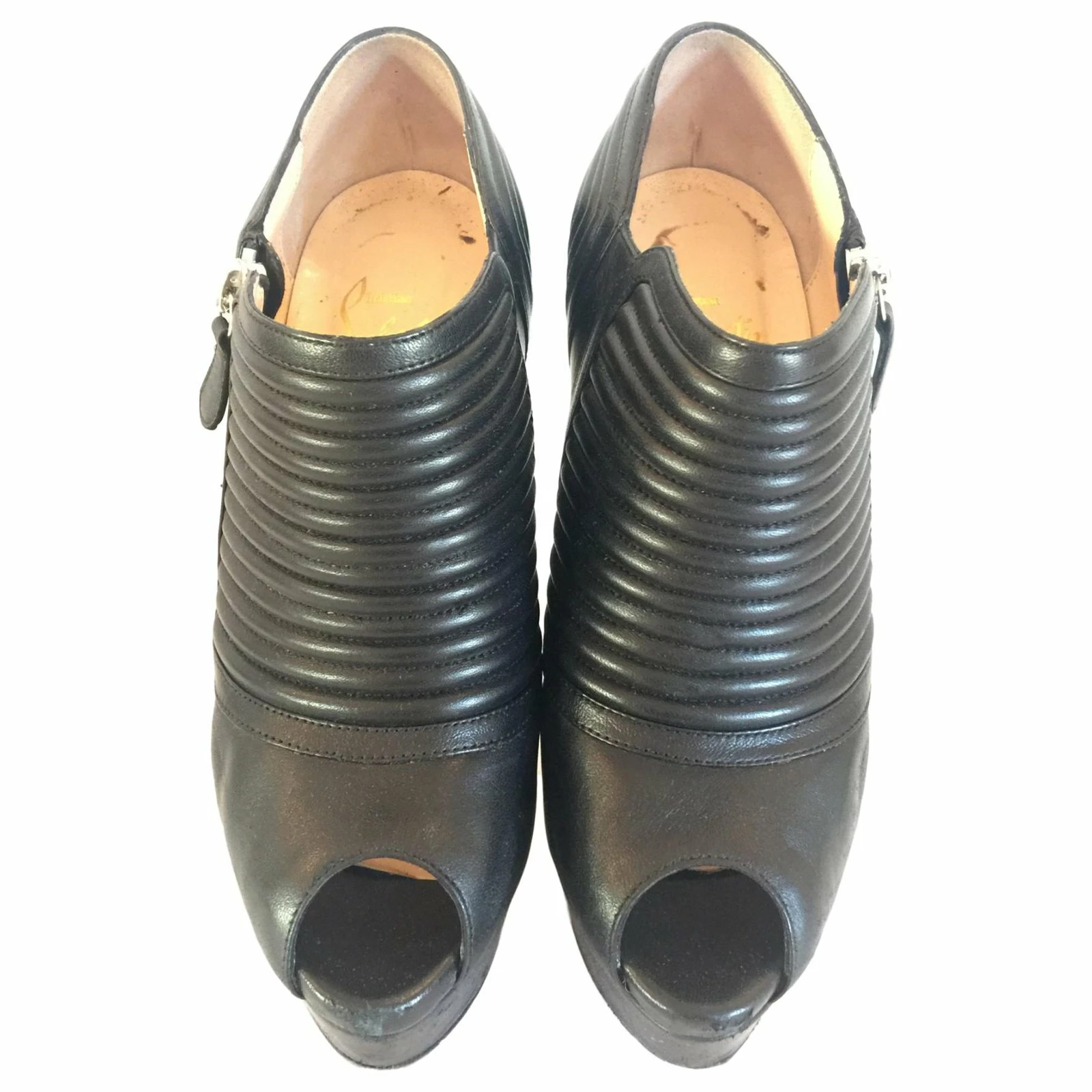 Christian Louboutin Black Leather Futura Platform Ankle Boots.