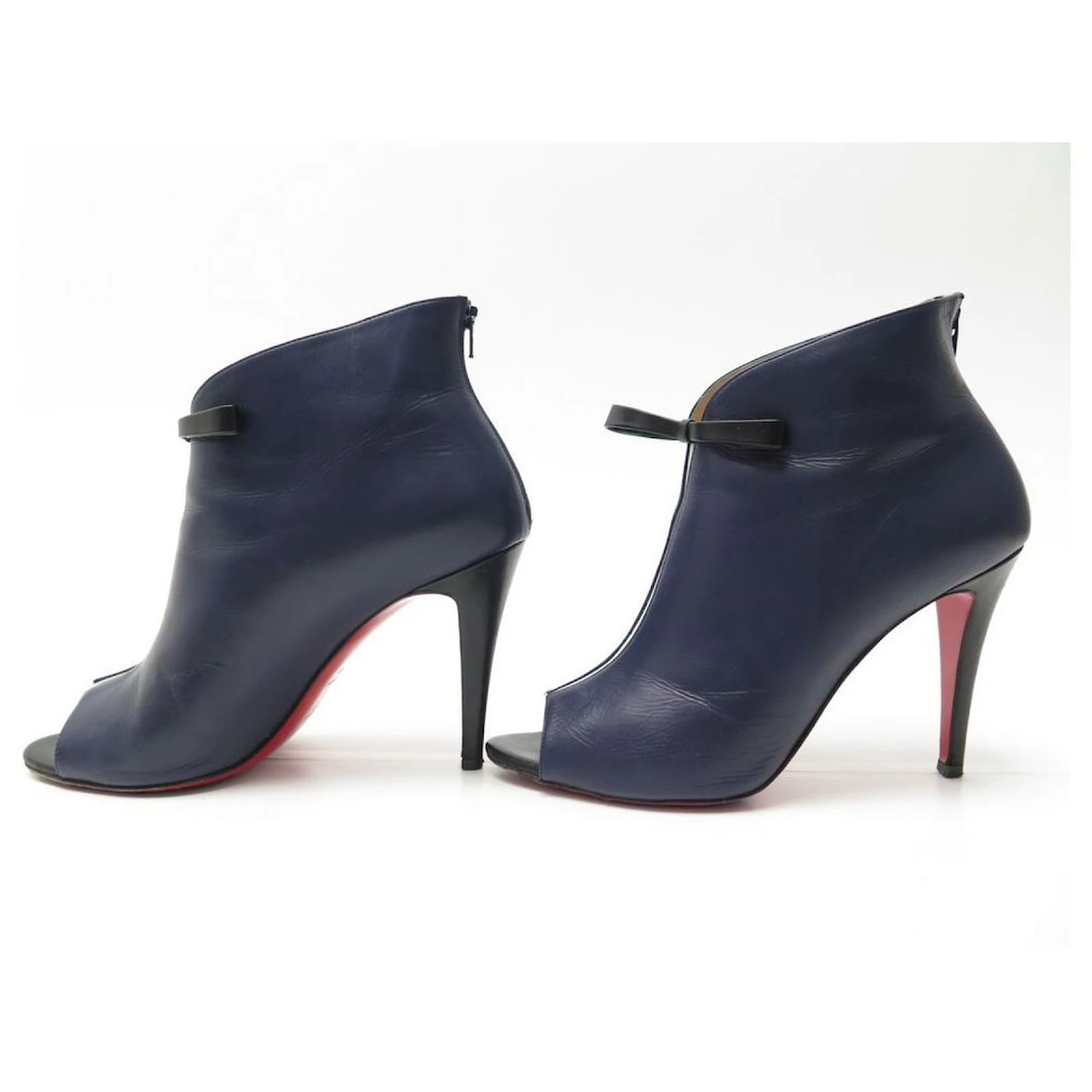 CHRISTIAN LOUBOUTIN COURSIVE ANKLE BOOTS 40 BLUE LEATHER BOOTS Navy Blue