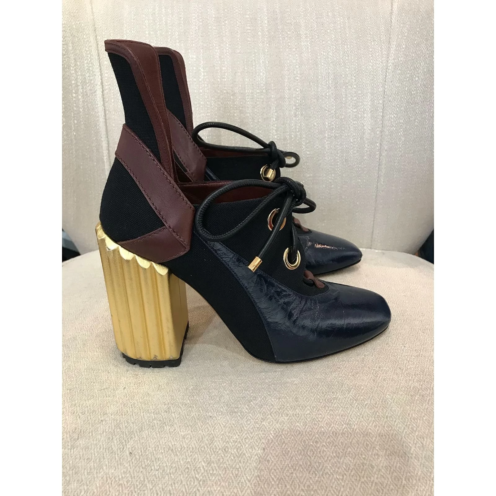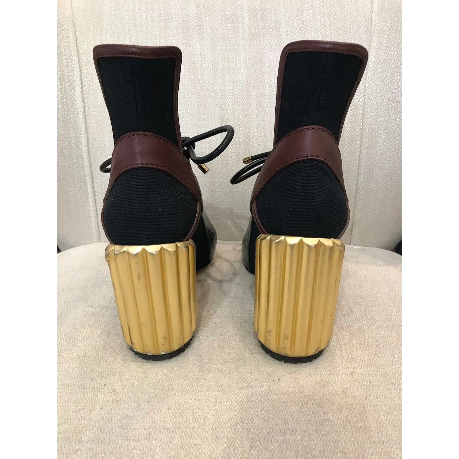 “Dior boots, 40.5 Size.Boots in leather and mesh in navy blue and burgundy color. lace -up closure. Golden thick heels.