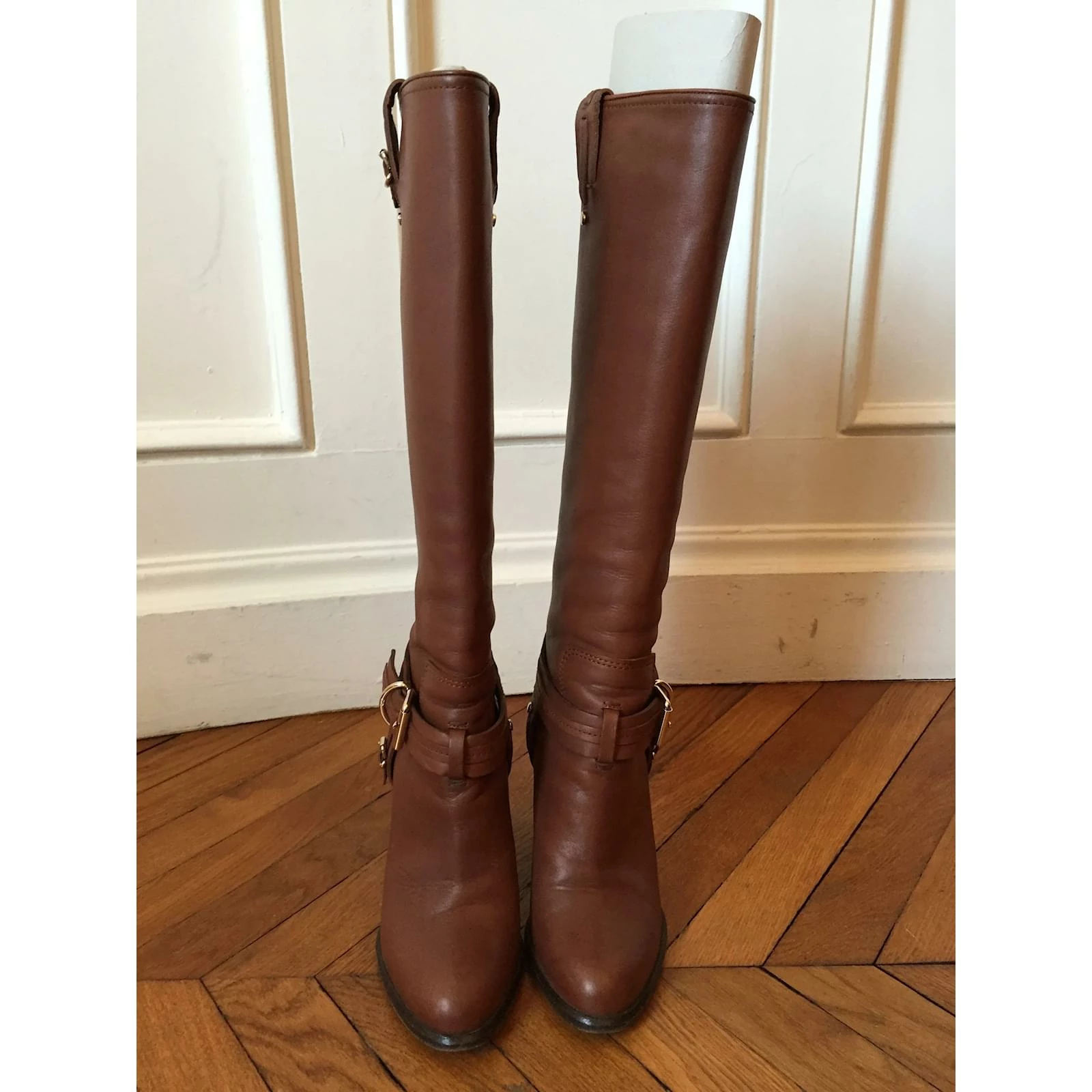 Boots Christian Diorpoinure 36bots in brown leather height height 8.5 cm and height of the stem 39 cmtrès good condition, some marks of use with box
