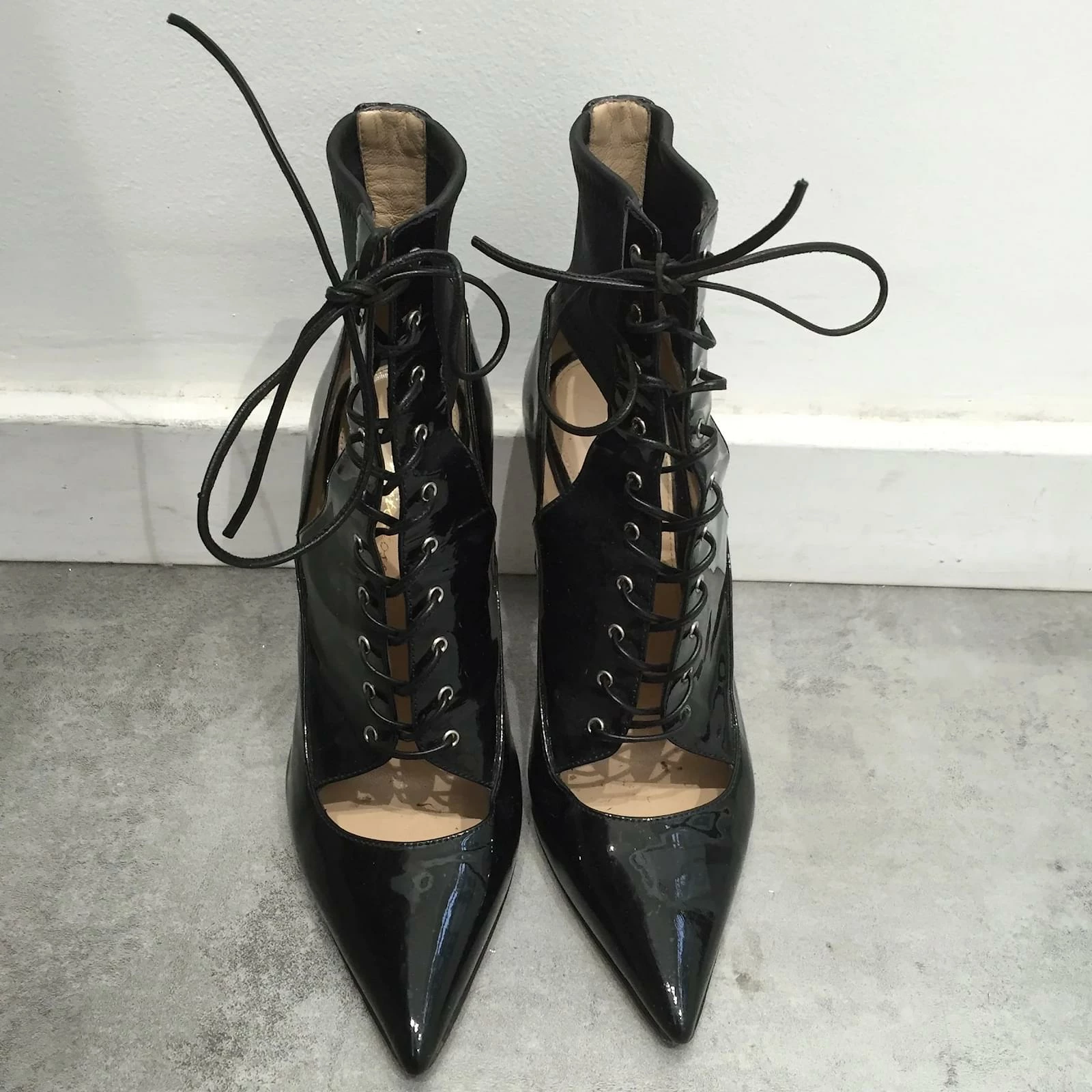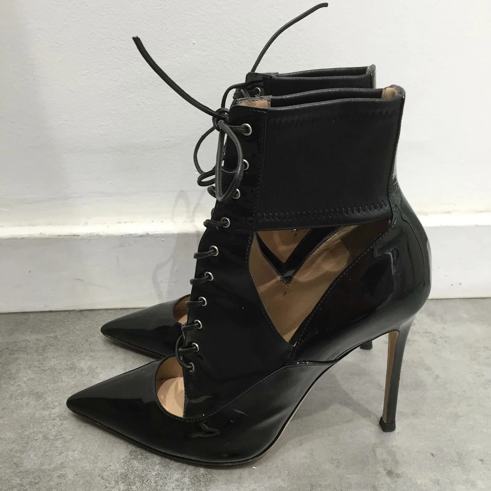 Gianvito Rossiponture 37.5 -boots with cut black pantyy lace lace -ups, pointed out of heels 10 cm Very good condition