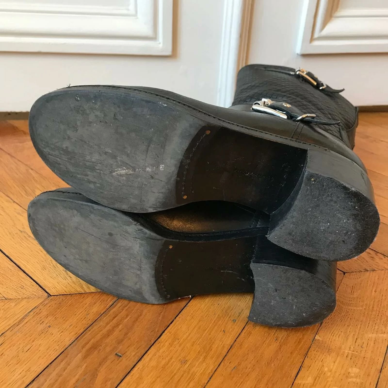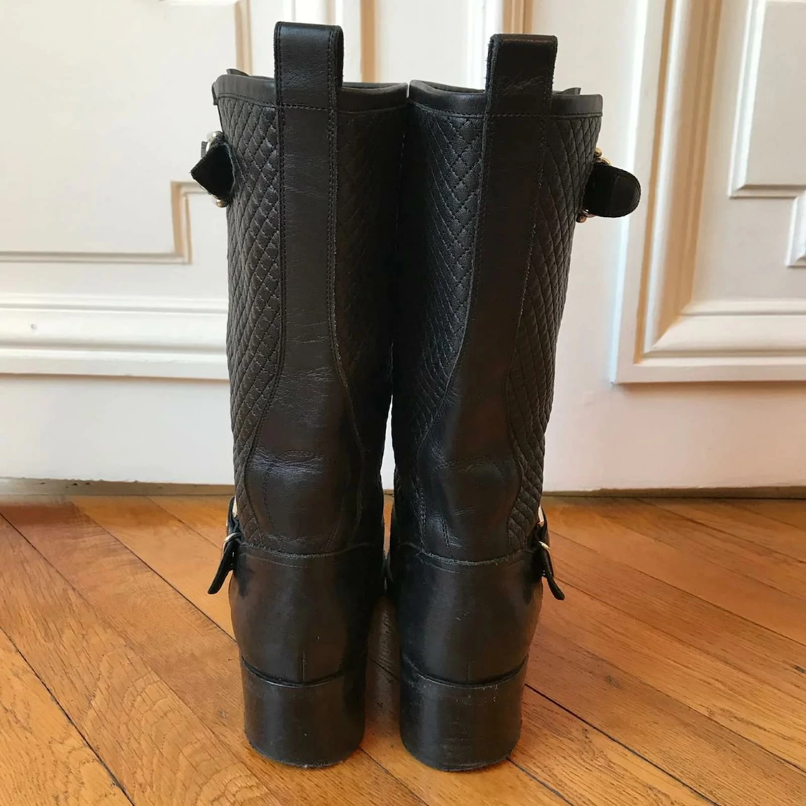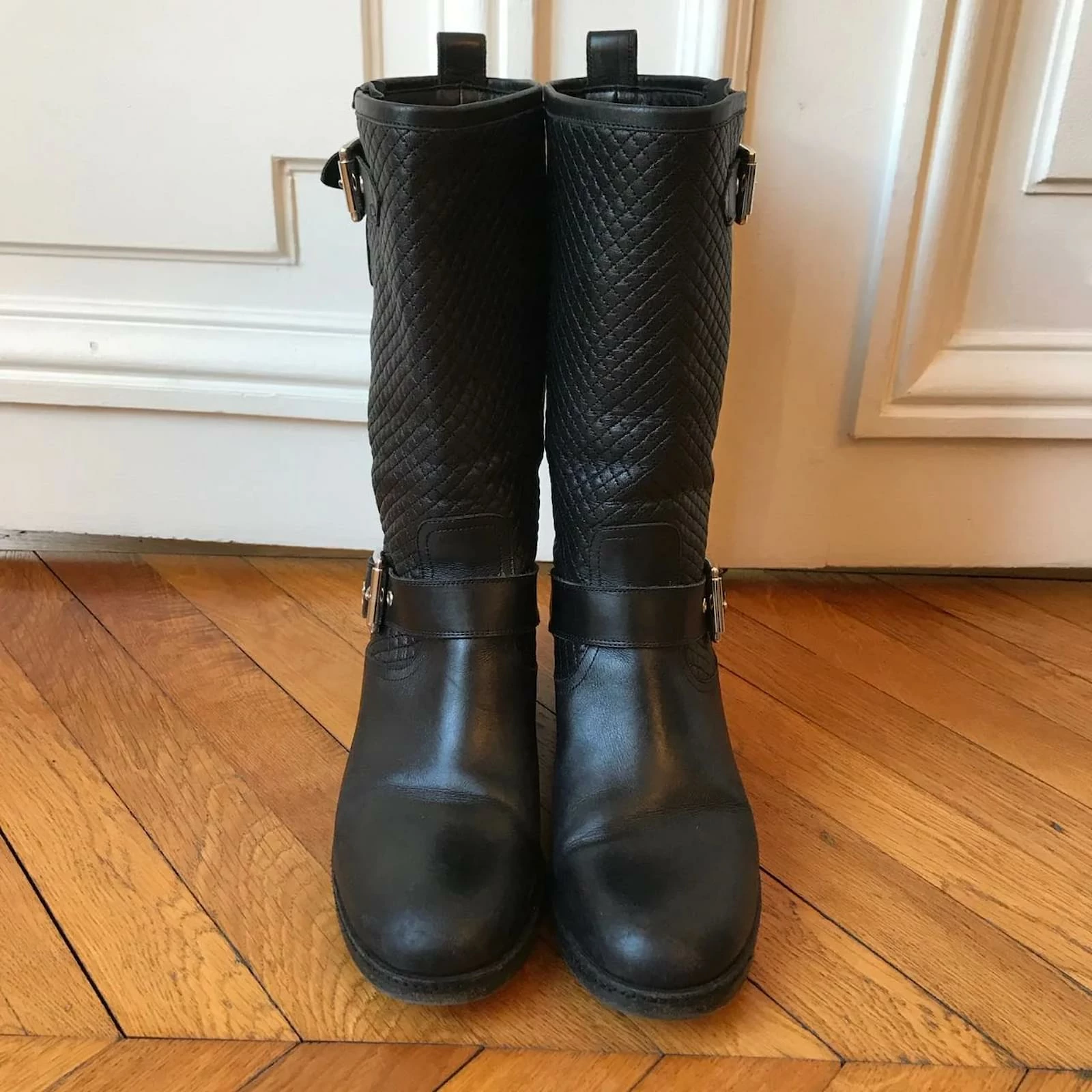 Gianvito Rossi boots, 38 size. Biker style boots in black leather, with two silver curls. Height of the stem 26 cm and heels 5 cm. Very good state