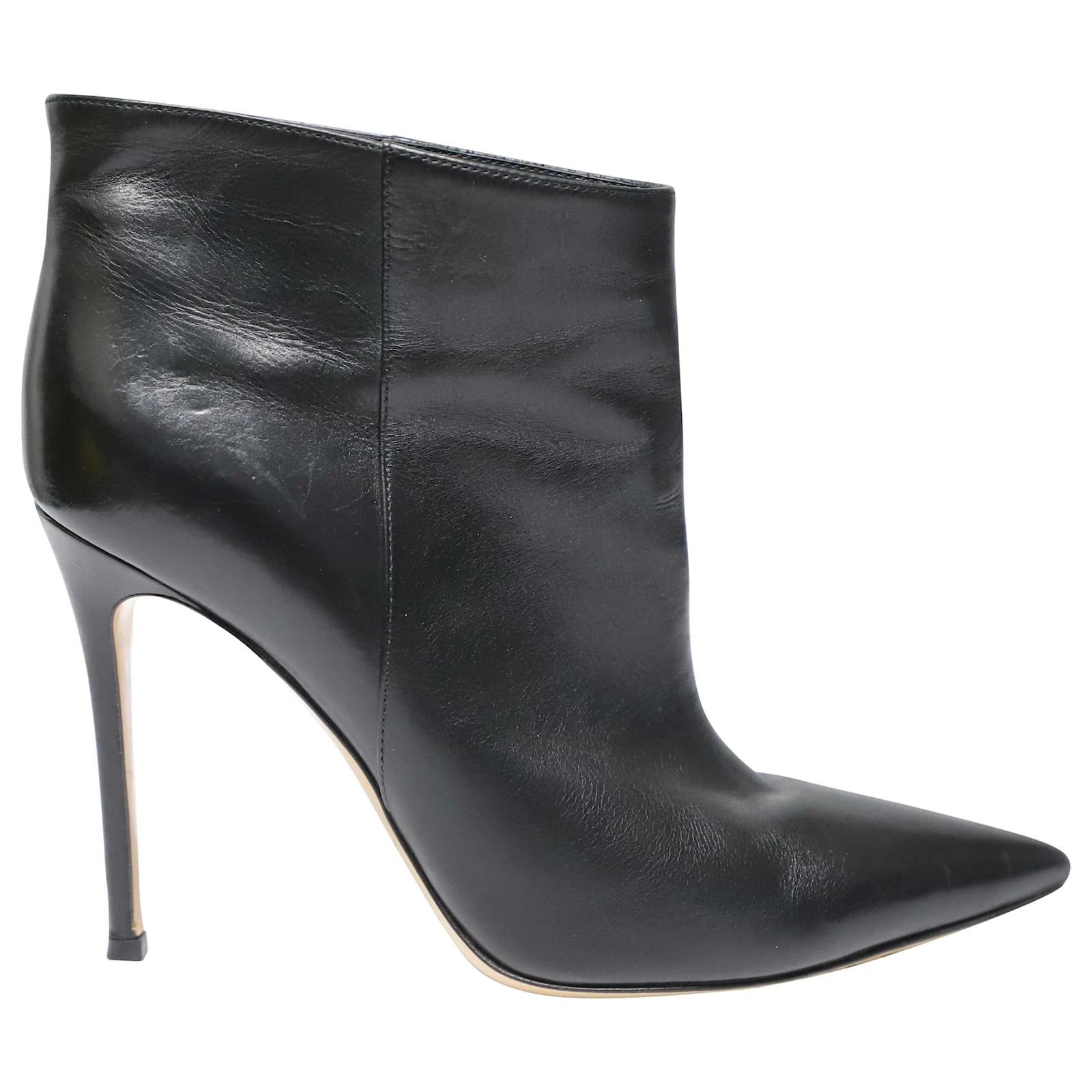 Enjoy the most fashionable days with these stylish ankle boots from Gianvito Rossi. Modern in design and craftsmanship, they are crafted from leather, designed with pointed toes and side zip closure, and are finished with 10 cm heels. A fashionable choice that you won’t regret!