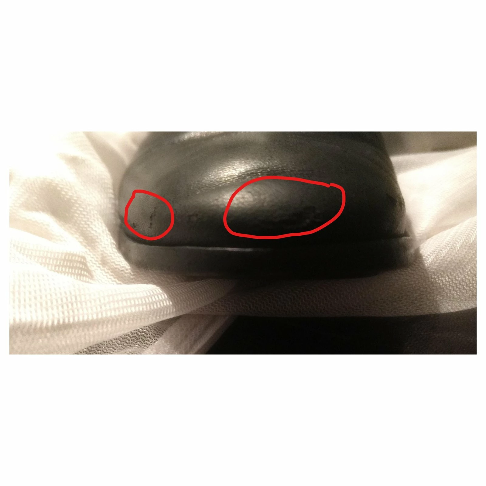 Some damage on the nose (see picture) and alongside the bottom of the shoe (I dyed it with leather paint to cover it up). Fits a normal size 38.5 or 39.