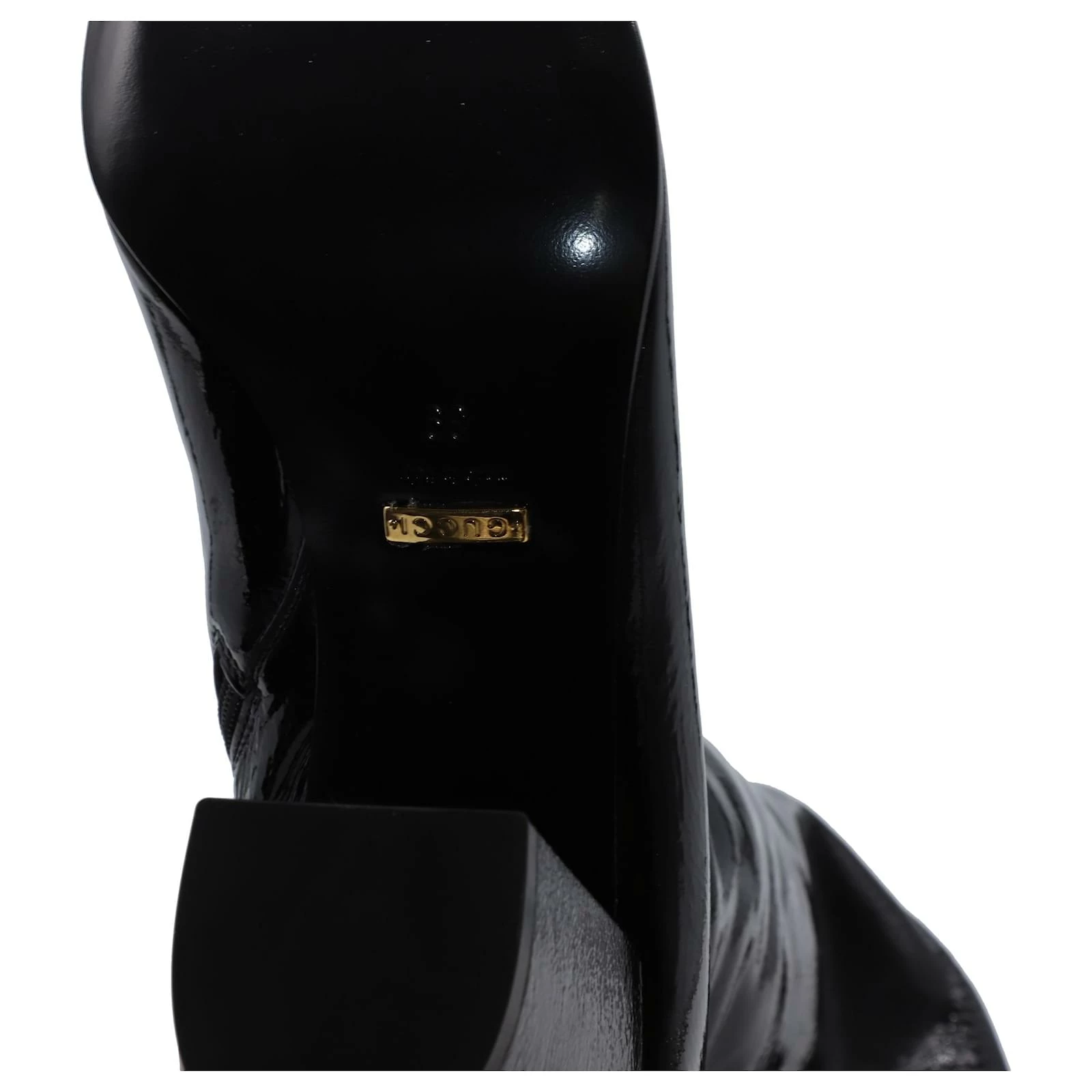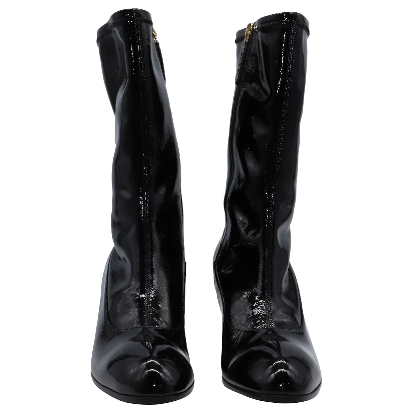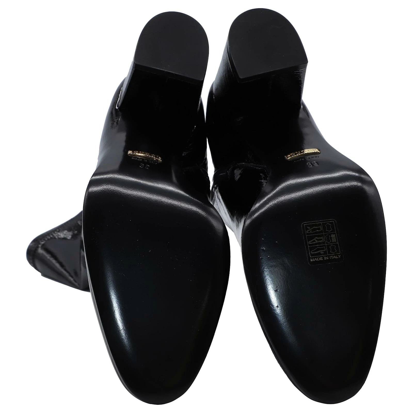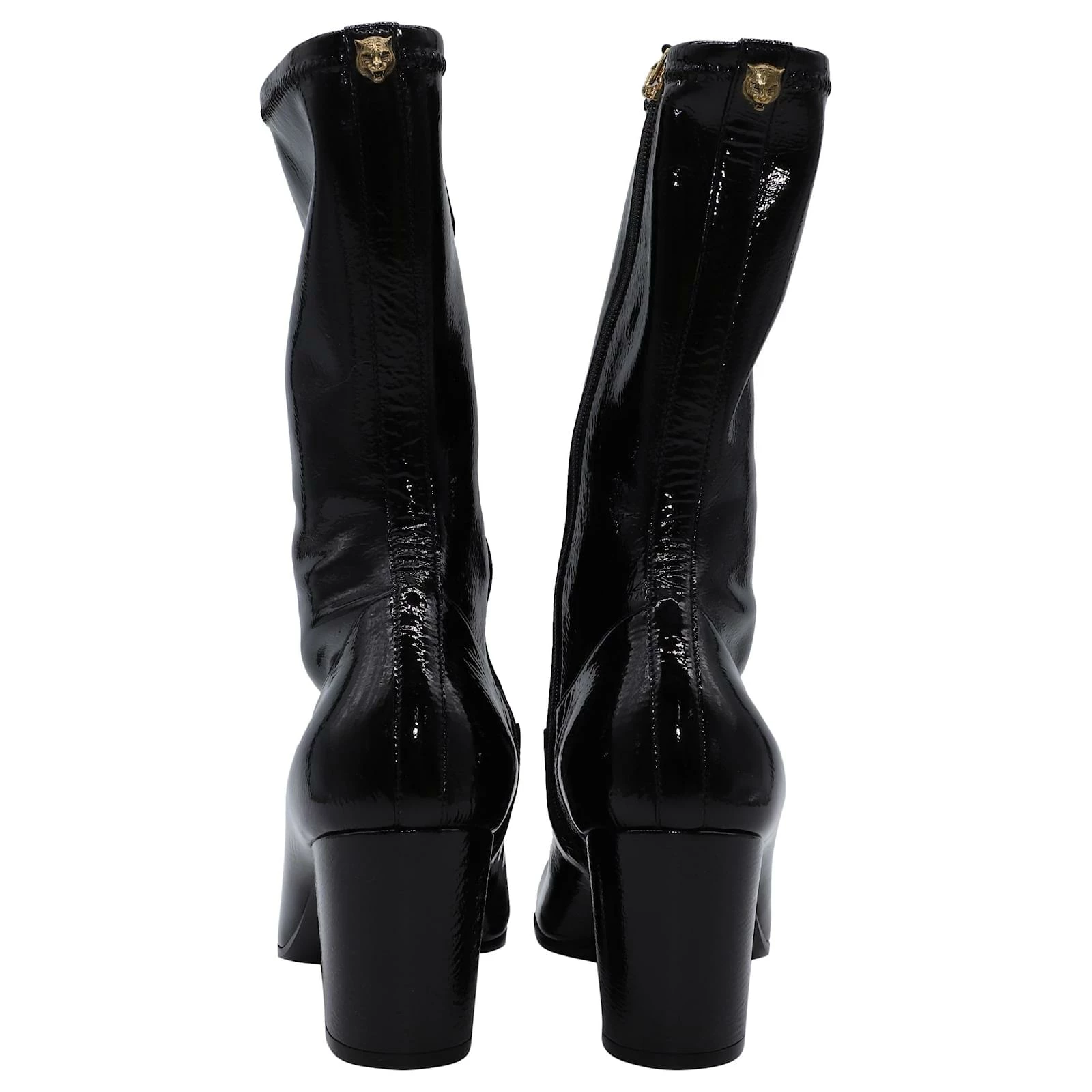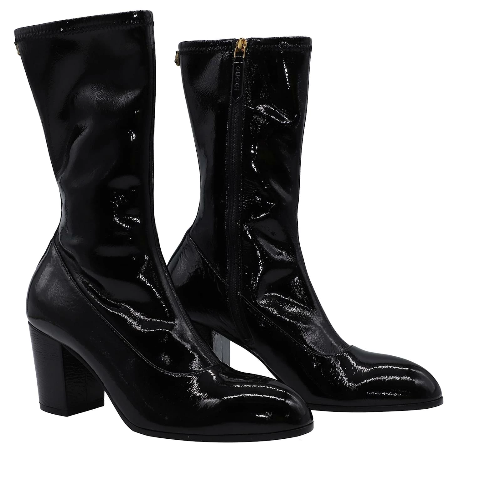 These ankle booties from Gucci is just absolutely fabulous! They are crafted from black patent leather and designed with almond toes and zippers on the sides. They are elevated on short heels. A great pear for your little black dress to give an edgy and fashionable look!