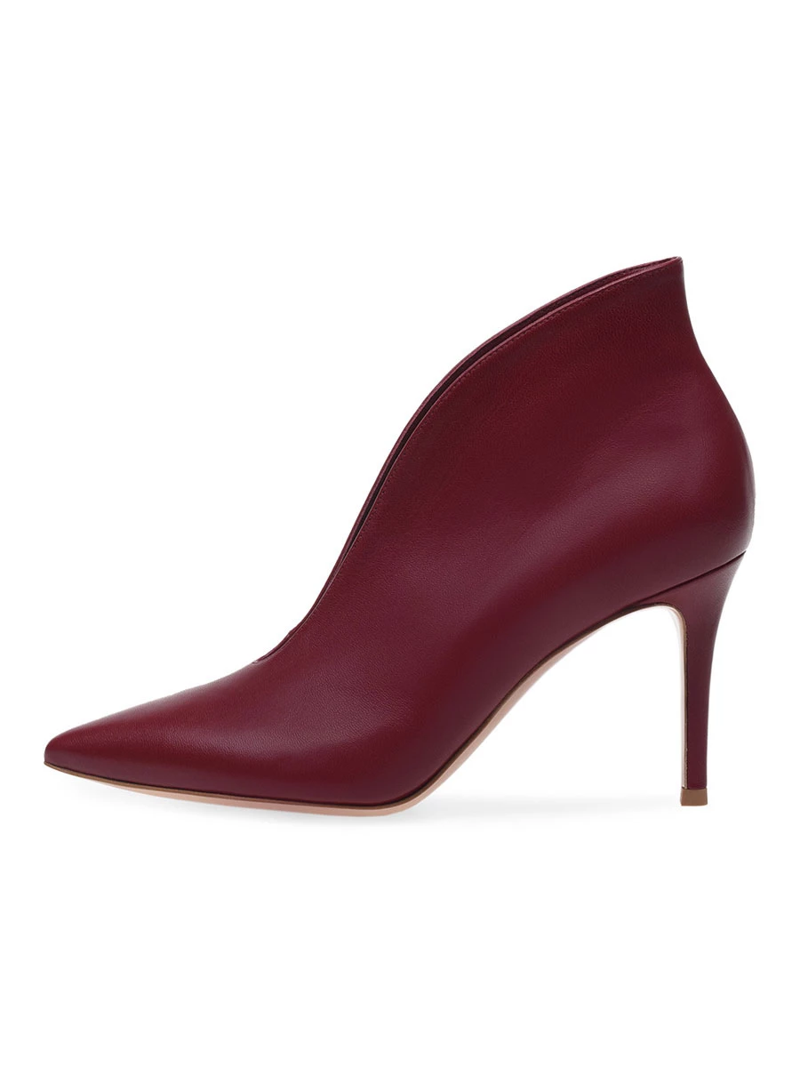 High Heel Booties Burgundy Pointed Toe Stiletto Heel Ankle Boots