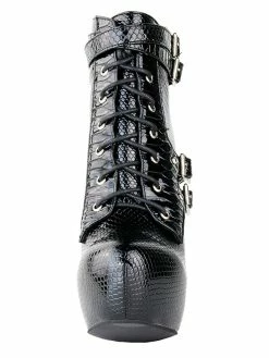 Black 4 1/10″ High Heel Lace-Up Patent Leather Womens Sexy Boots