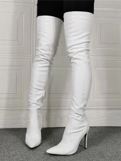 Women Over The Knee Boots Plus Size Stiletto Heel PU Leather White Thigh High Boots