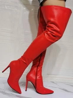 Women Over The Knee Boots Plus Size Stiletto Heel PU Leather Red Thigh High Boot