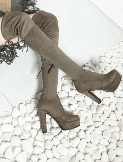 Platform Thigh High Boots Womens Almond Toe Stiletto Heel Over The Knee Boots