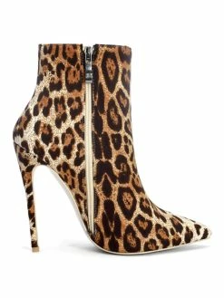 Women Ankle Boots Pointed Toe Leopard Print Stiletto Heel Micro Suede Upper High Heel Booties