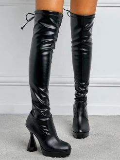 Women Over The Knee Boots Chunky Heel Platform Black Thigh High Boots
