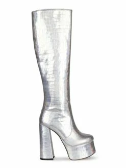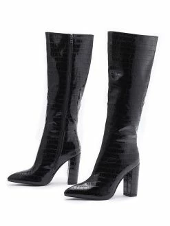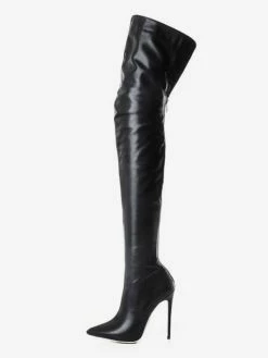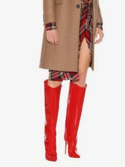 Red Knee High Boots Point Toe Bright Leather Stiletto Heel Knee Length Boots For Women
