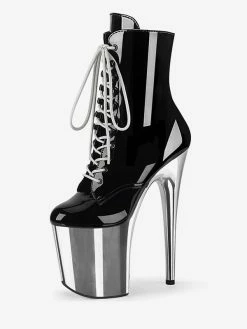 Black 4 1/10″ High Heel Lace-Up Patent Leather Womens Sexy Boots