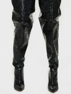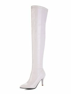 Womens Thigh High Boots Patent Leather Pointed Toe Bright Leather Stiletto Heel Boots