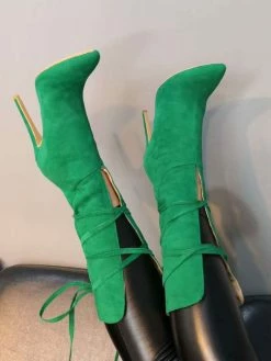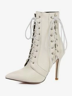 High Heel Booties Red Ankle Boots Pointed Toe Bright Leather Lace Up Booties For Women