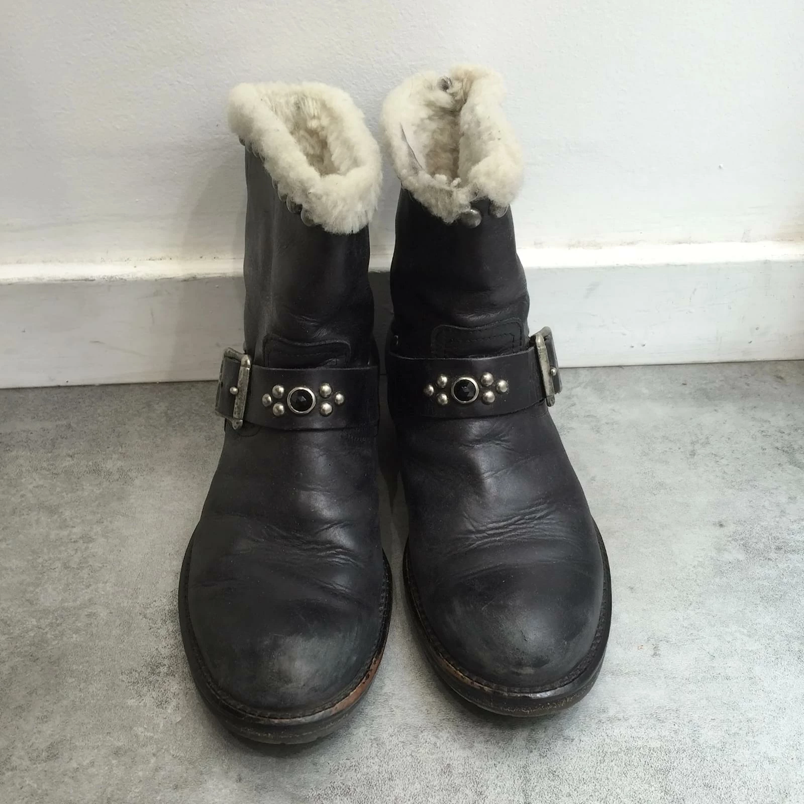 Boots HTC Size 37Boots Biker in black leather, stoves in good condition with box, Boutique price 570 €