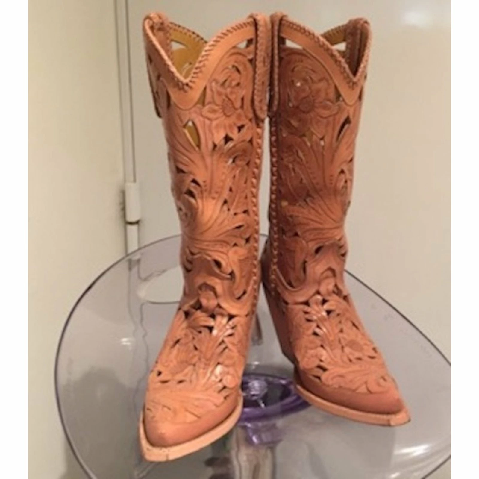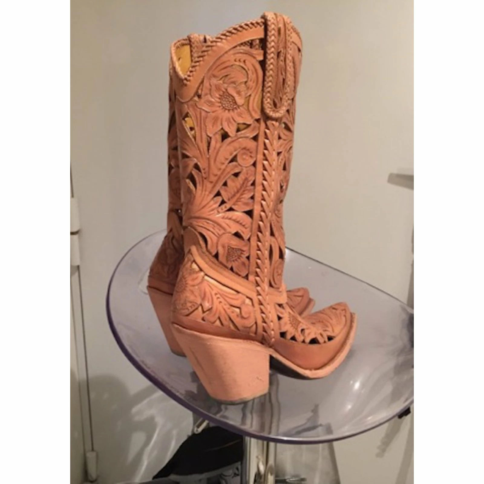 Jean Paul Gaultier Lace Leather Cowboy Boots Beige Caramel